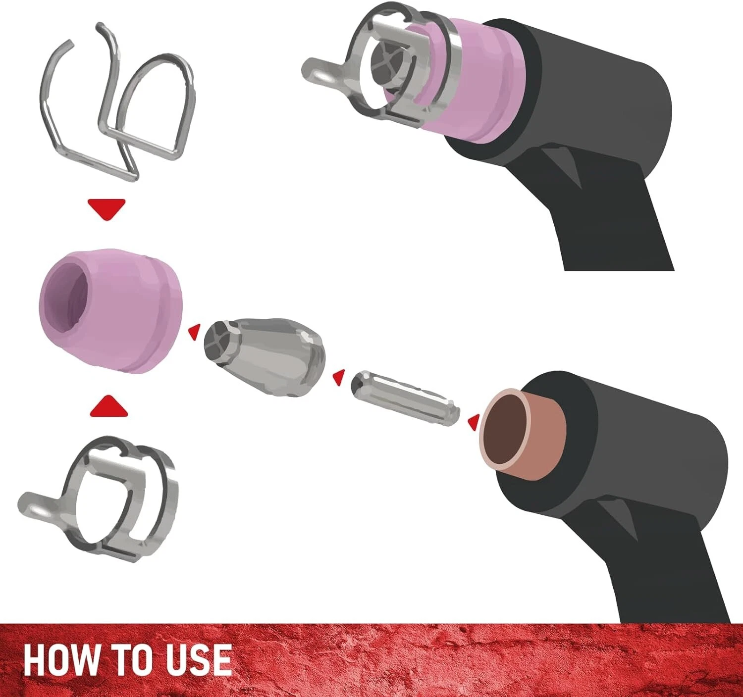 【Package Contents】This plasma cutter consumables kit includes 10 ceramic shield cups, 20 electrodes, 20 nozzles, and 10 brackets.
