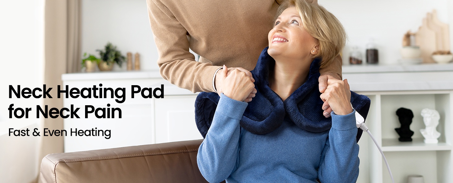 This 19"x24" electric heating pad for neck and shoulder features evenly distributed heating wires for fast heating and effective relief of muscle, spine tension, and stiffness. Neck and shoulder heating pad with 9 heating levels, you can customize the heat therapy to their desired temperature, ensuring a more comfortable experience. The heating pad has 4 timer settings (30/60/90/120 minutes), while an auto-off timer ensures safety and saves energy. Weighted edges help the heating pad drape naturally and neck snap fasteners hold the heated pad in place so you can move freely. The shoulder heating pad is made of premium flannel that is soft and comfortable, with a removable LED controller that makes it machine-washable to preserve its softness. With ETL safety certification and built-in overheat protection, the heating pad is versatile and can be used while relaxing, studying, working, doing household chores, and more.