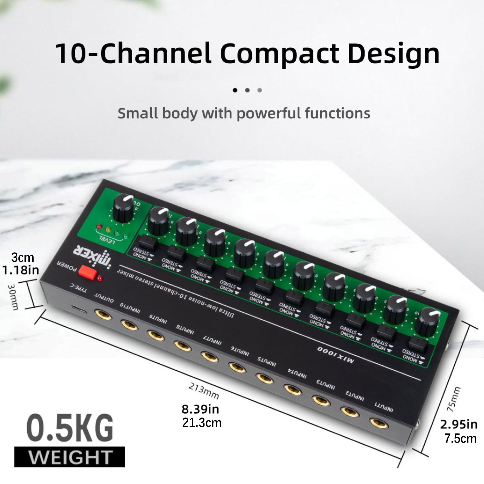 Low Noise audio output: The mixer has a high quality low noise chip, optimized for high audio applications. It provides clear, low-noise audio output that significantly enhances the user's listening experience and makes every listening a pleasure.