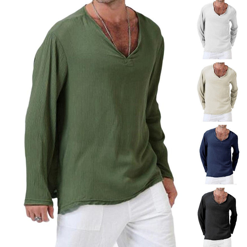* Item Features:Mens ,Casual ,Shirts, Long Sleeve,  V-neck Shirts , Cotton ,Linen ,T-shirts Fashion Retro, Breathable Simple Tops Tees,Shirts