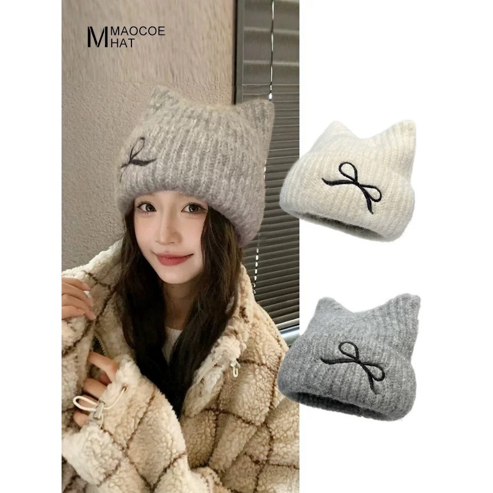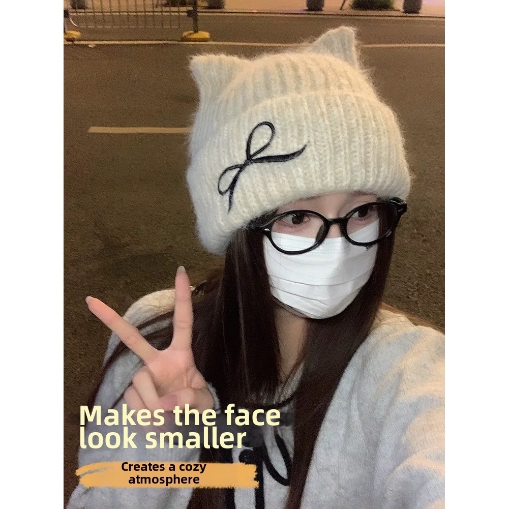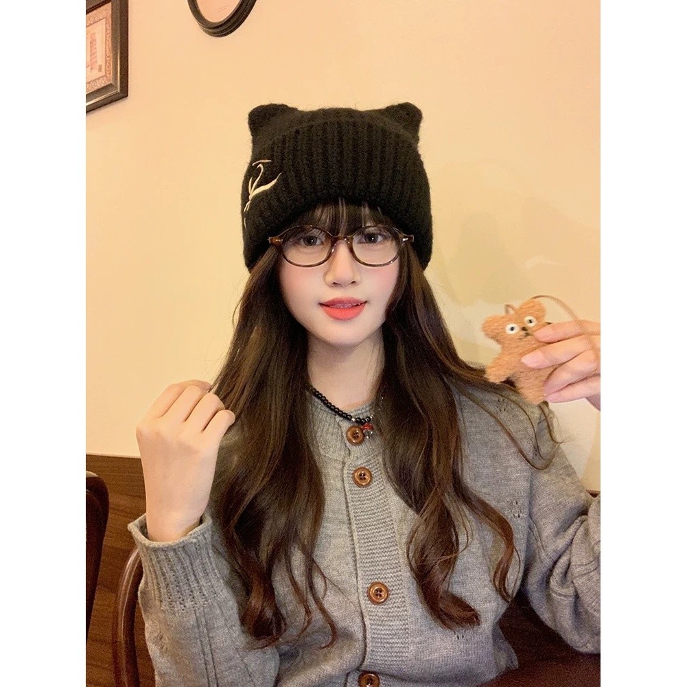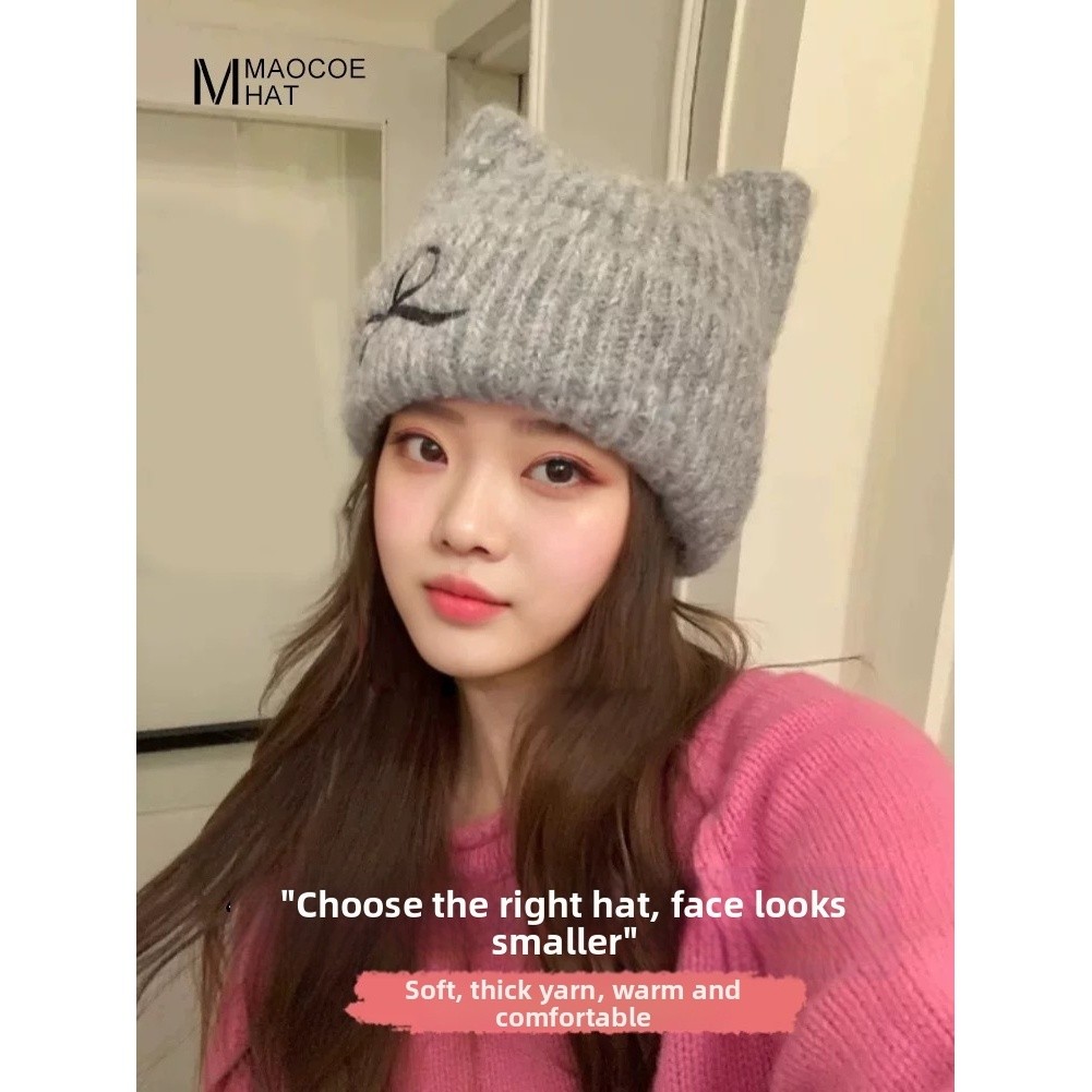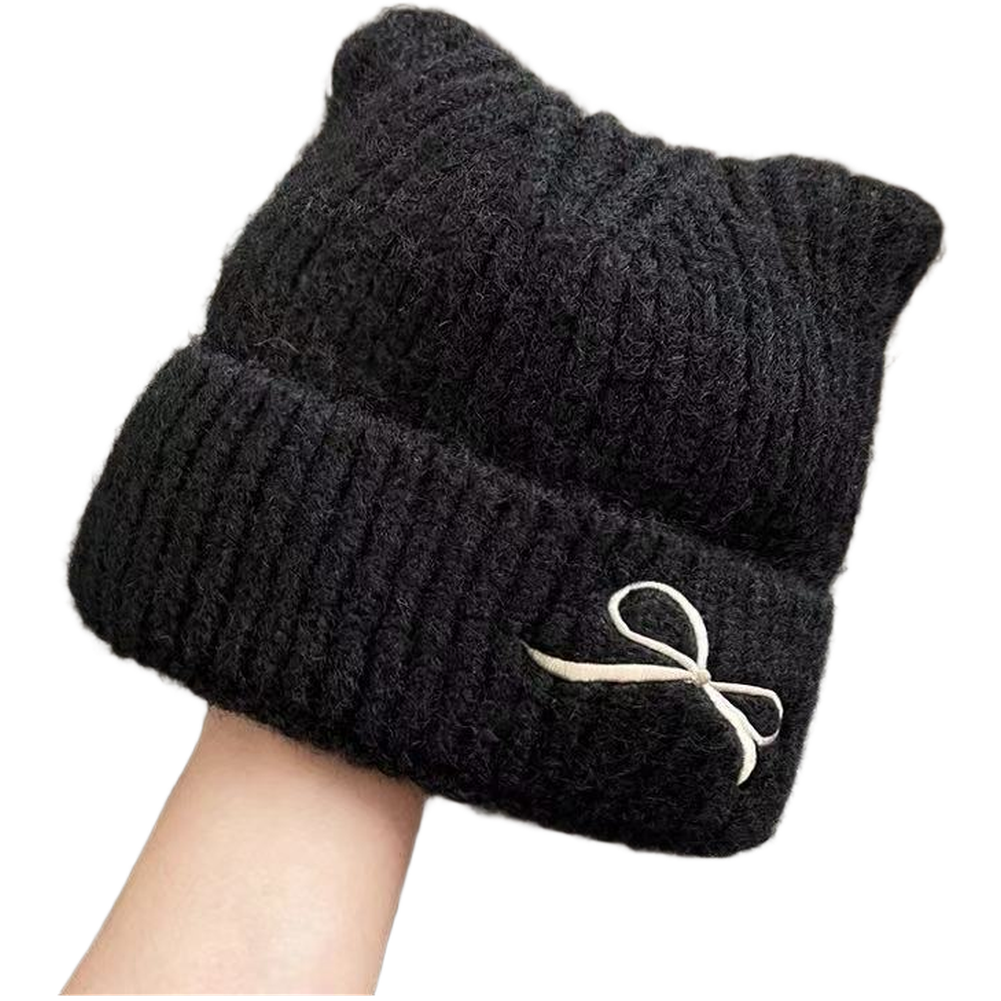 Bonnet d'oreille de chat d'hiver pour femmes chapeau en tricot doux chaud avec a