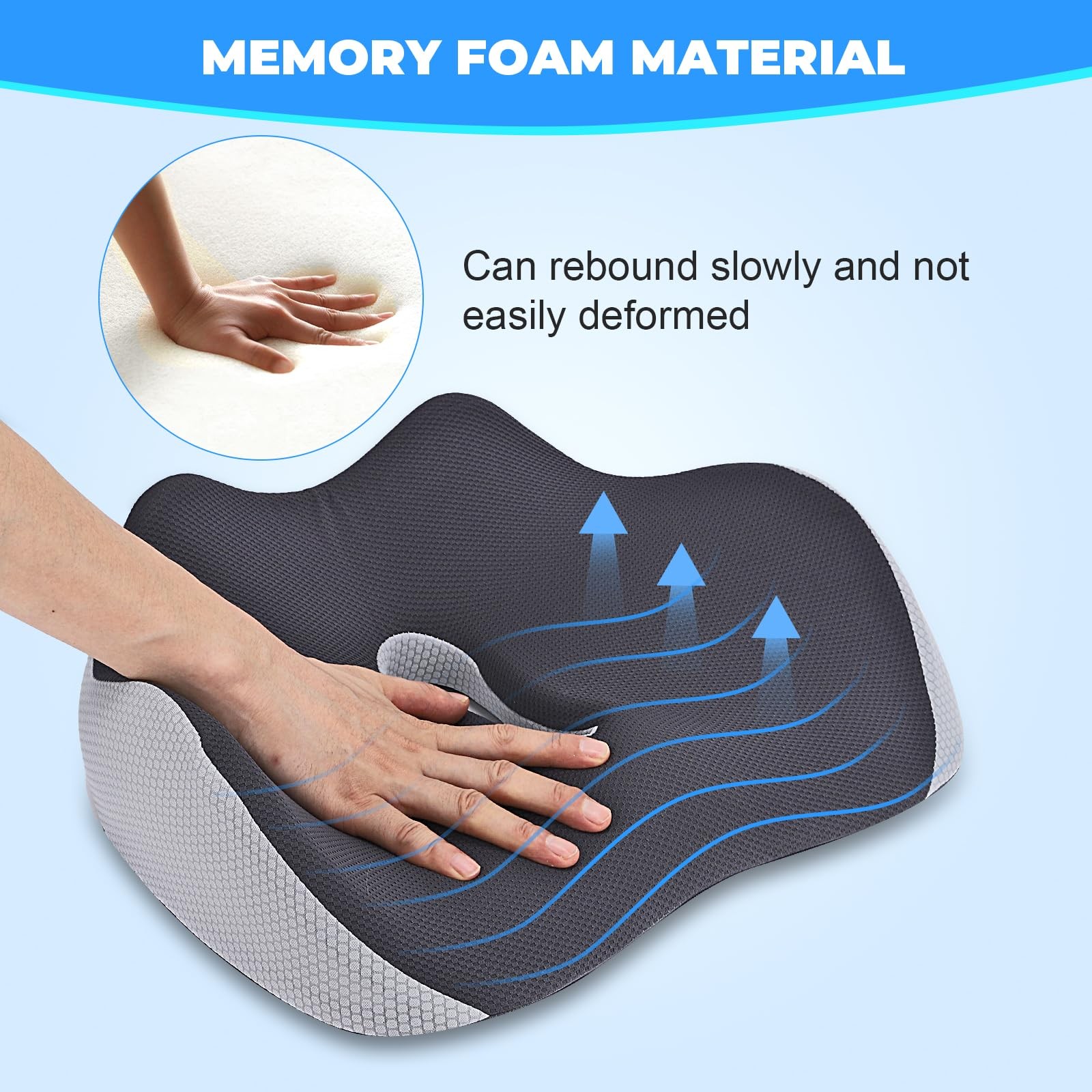 - Mit der wabenförmigen Netzstruktur kann es Hitzestau verhindern und das Risiko von Druckstellen durch langes Sitzen effektiv reduzieren. Der Bezug ist abnehmbar und waschbar, um ihn sauber zu halten.