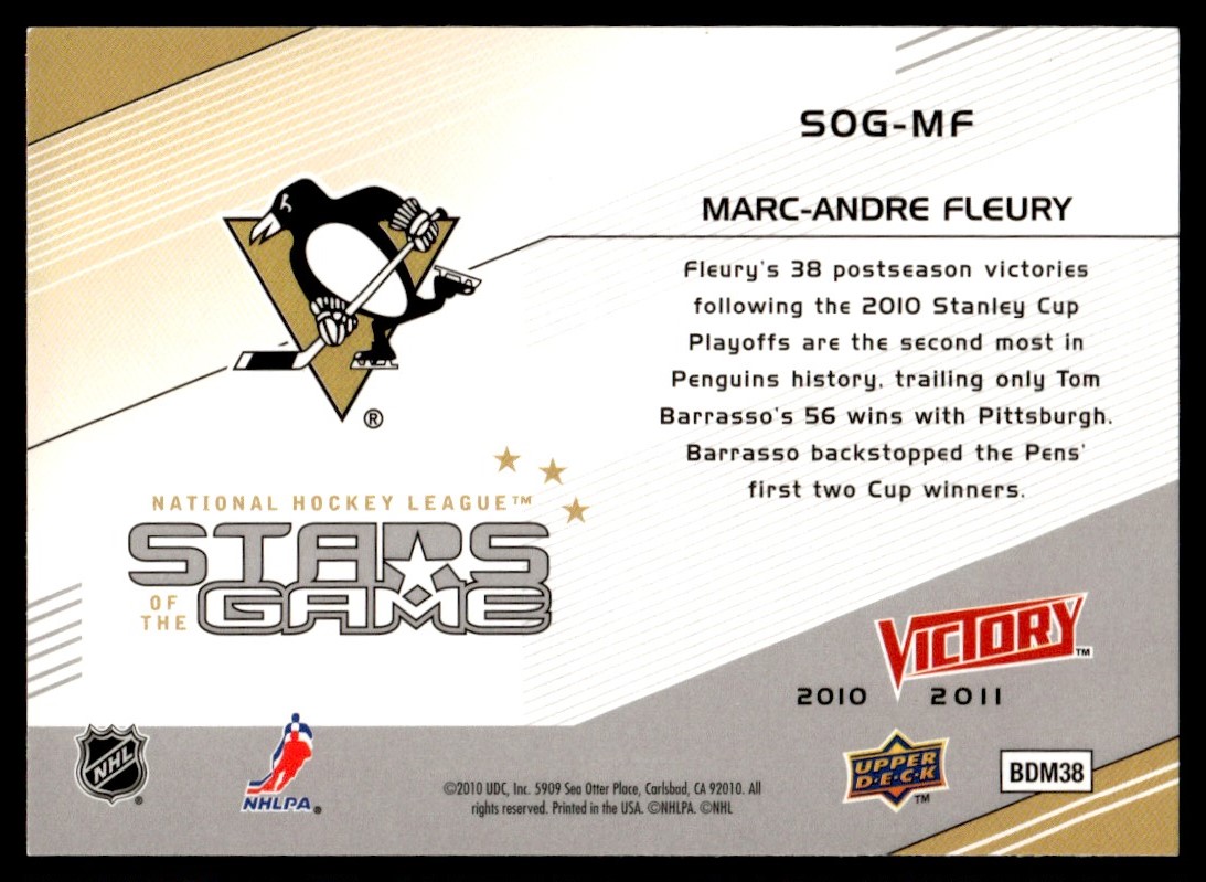 | 2010-11 Upper Deck Victory Stars of the Game Marc-Andre Fleury Pittsburgh |