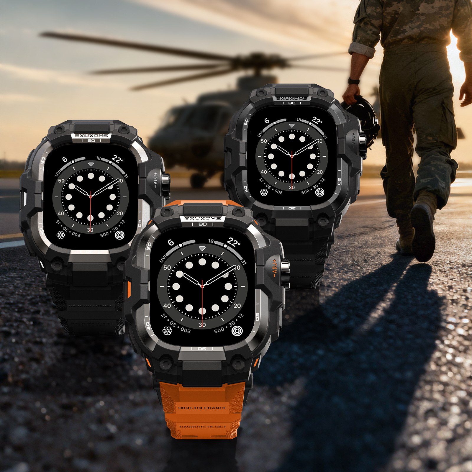 Tactical look and feel: The watch features a recessed metal case, a fully functional digital crown, and practical buttons. Its bold and practical style complements the design elements, making it both durable and imposing on the wrist
