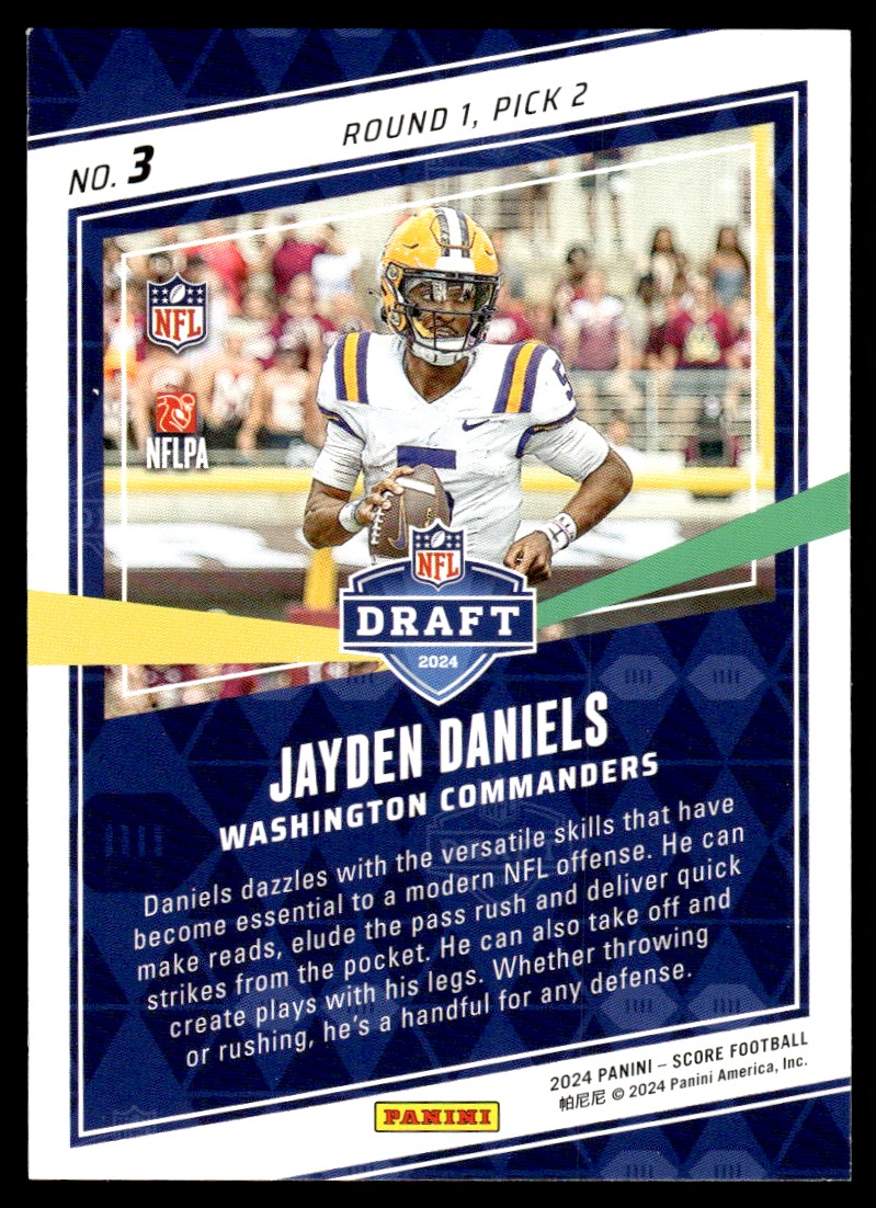 | 2024 Score NFL Draft Jayden Daniels Rookie Washington Commanders #3 |