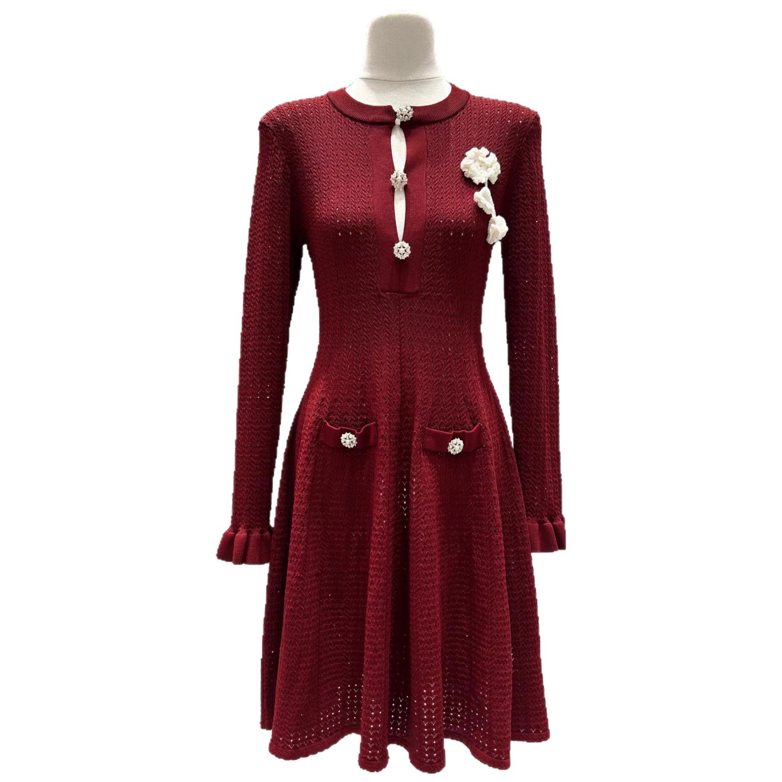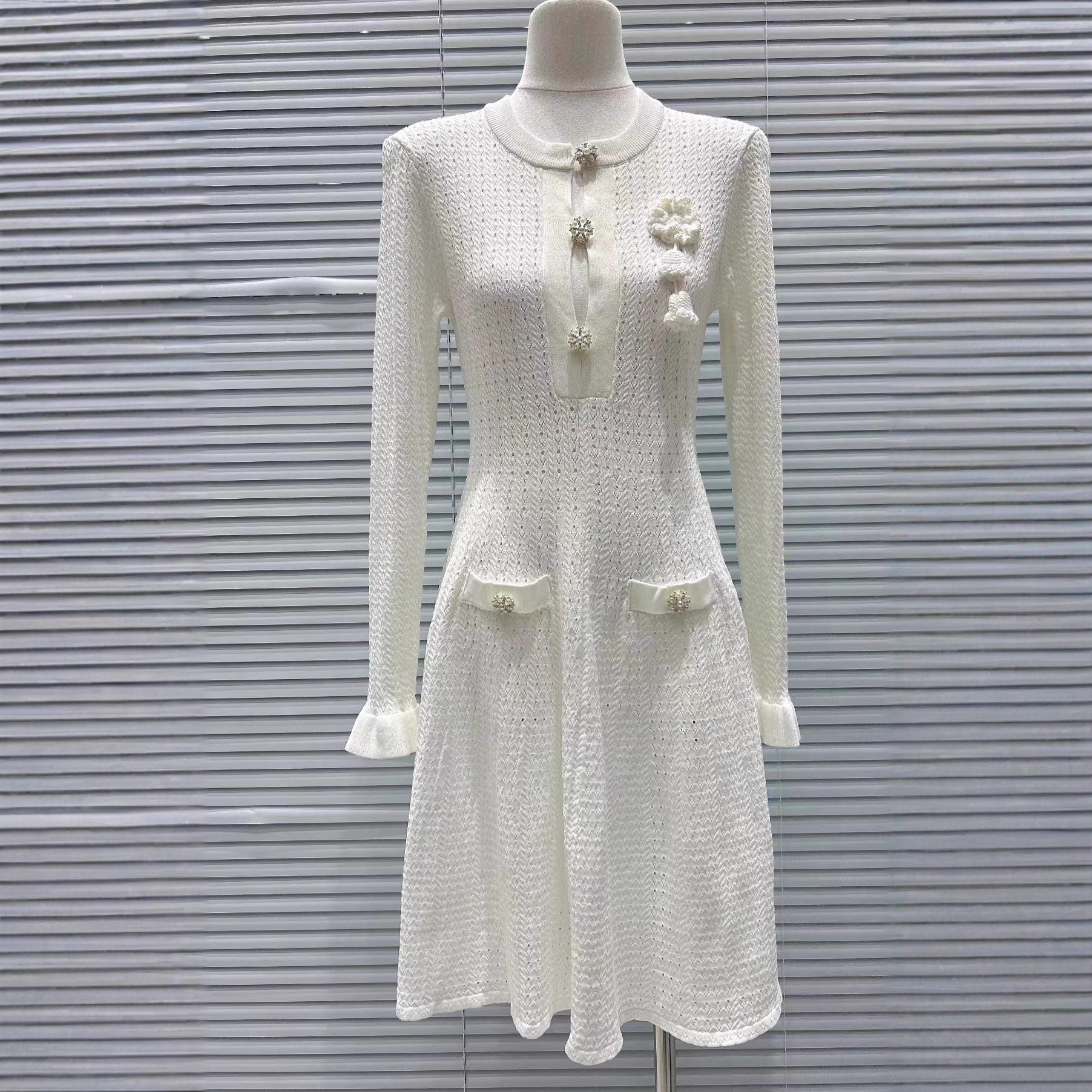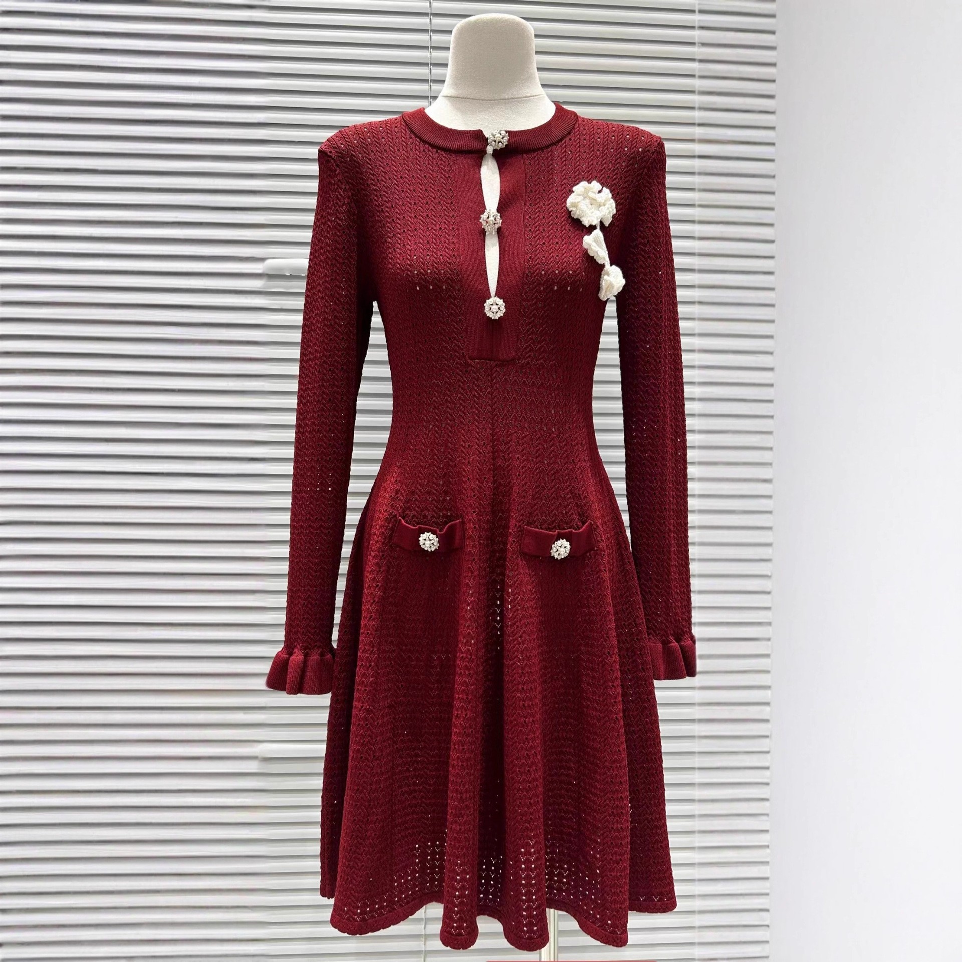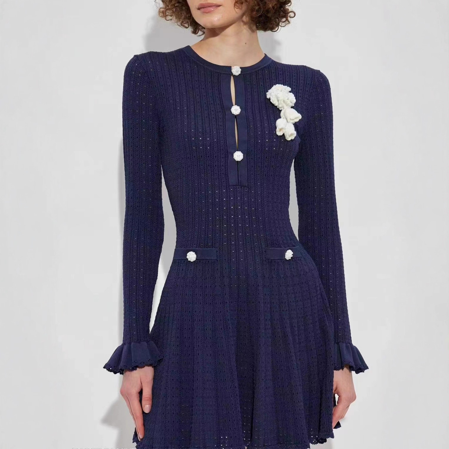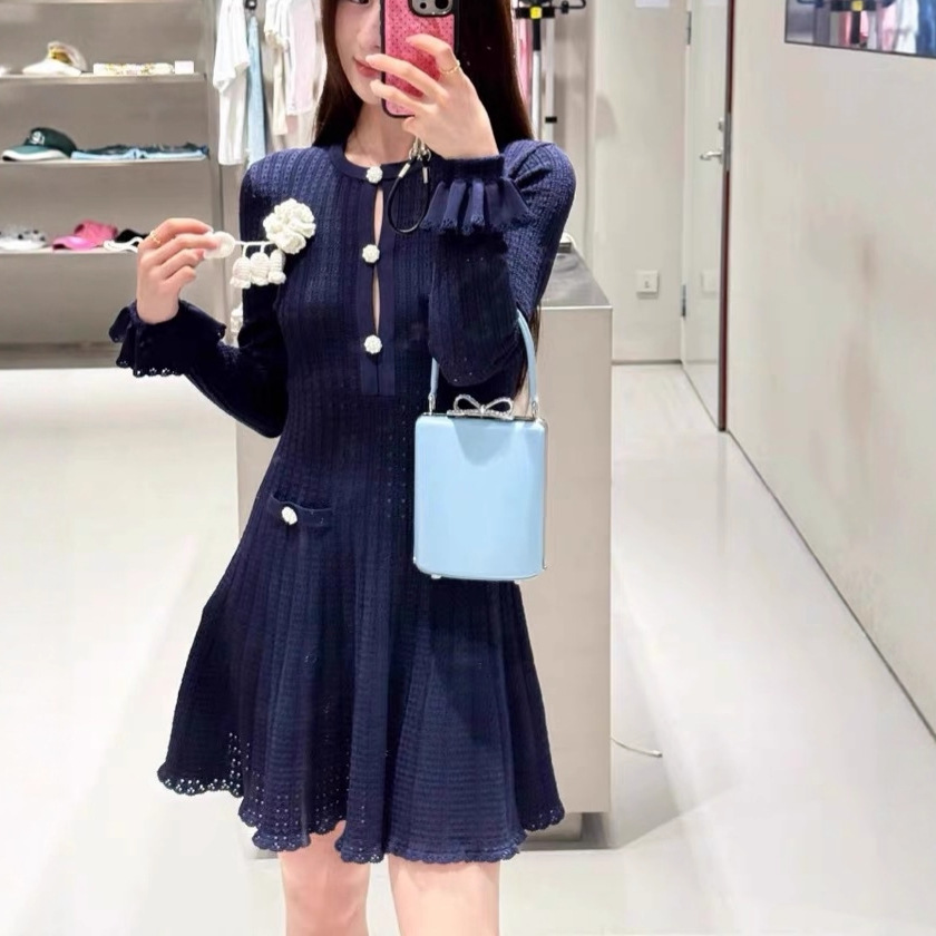 Self-Portrait Womens Autumn New Fashion Round Neck Long-sleeved Knitted Dress