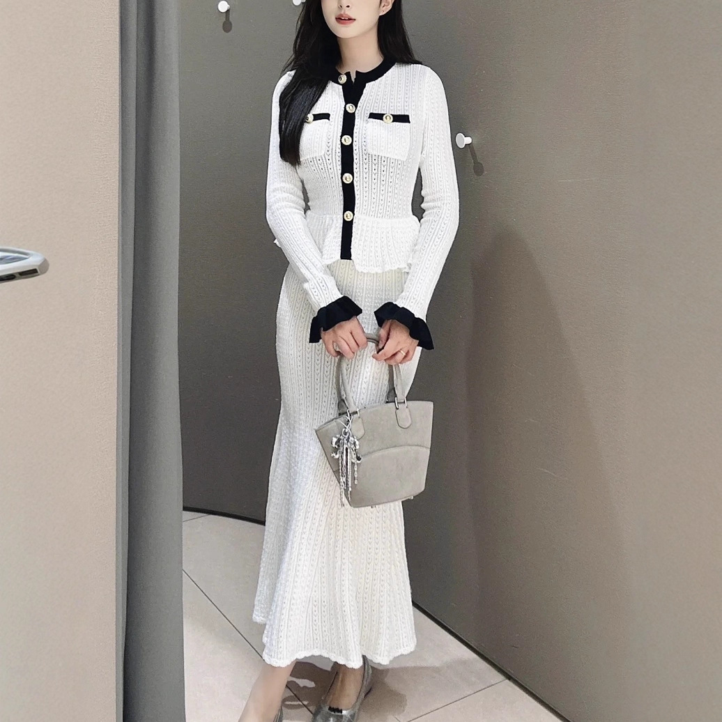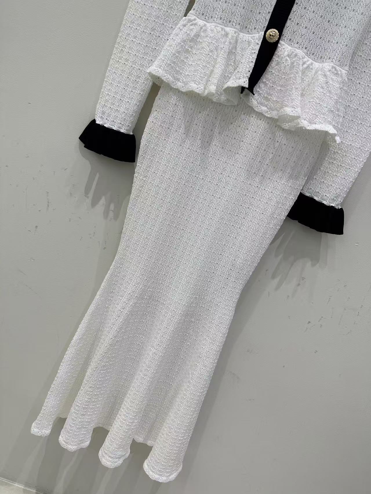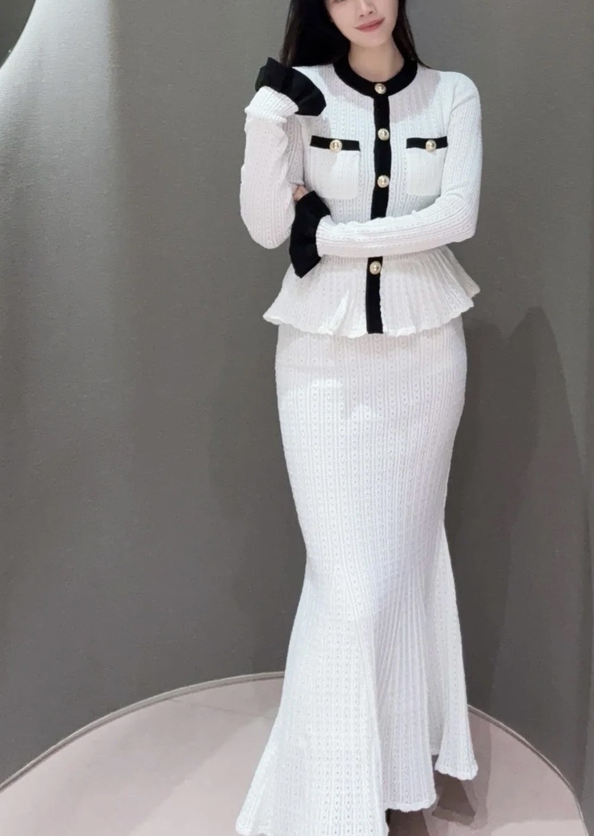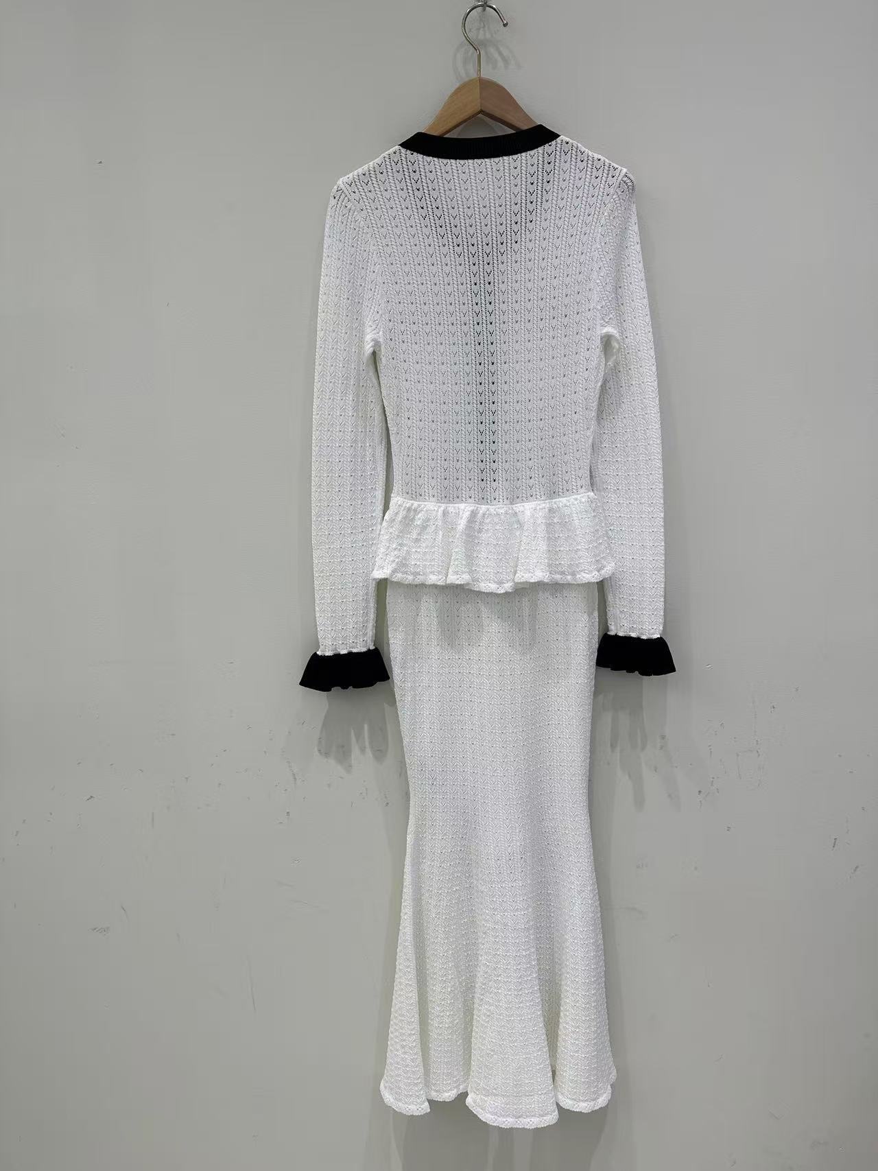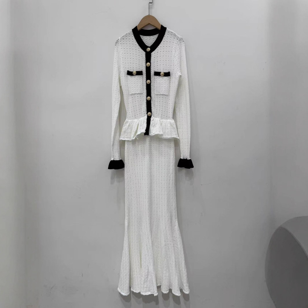 Self-Portrait Womens Autumn New Round Neck Contrasting Color Knitted Long Dress