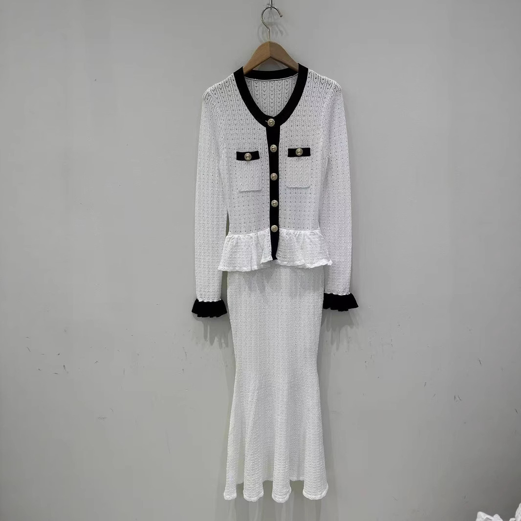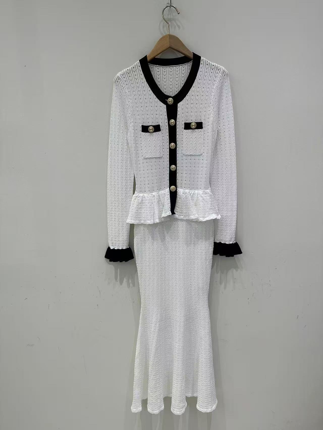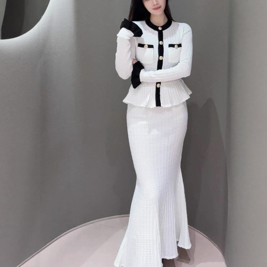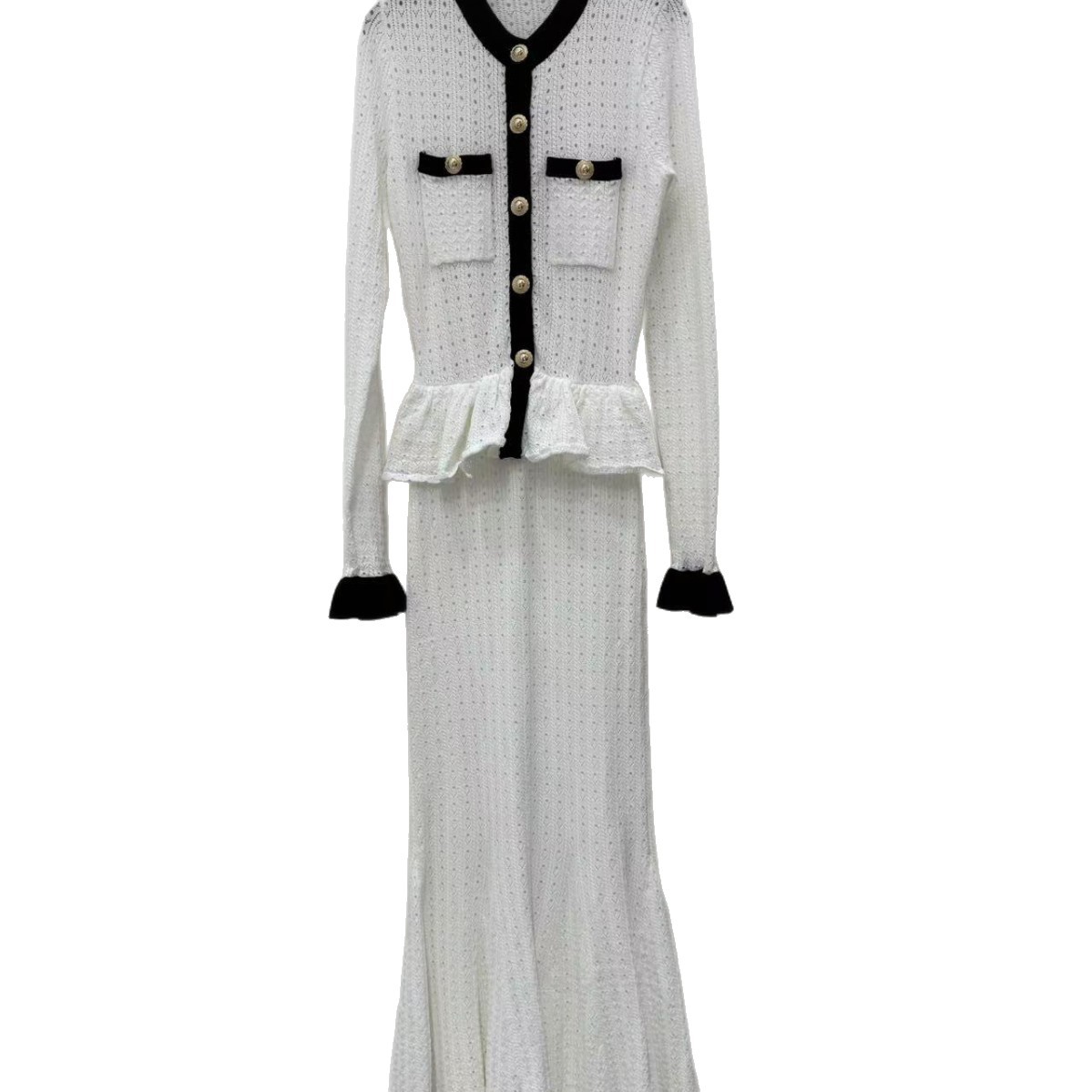 Self-Portrait Womens Autumn New Round Neck Contrasting Color Knitted Long Dress