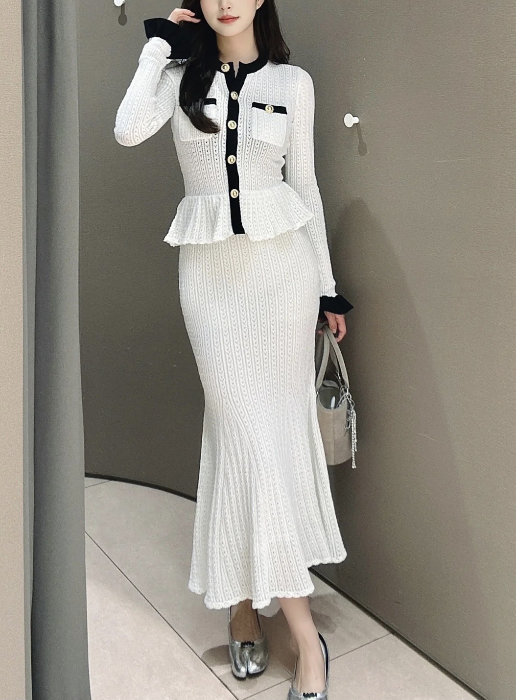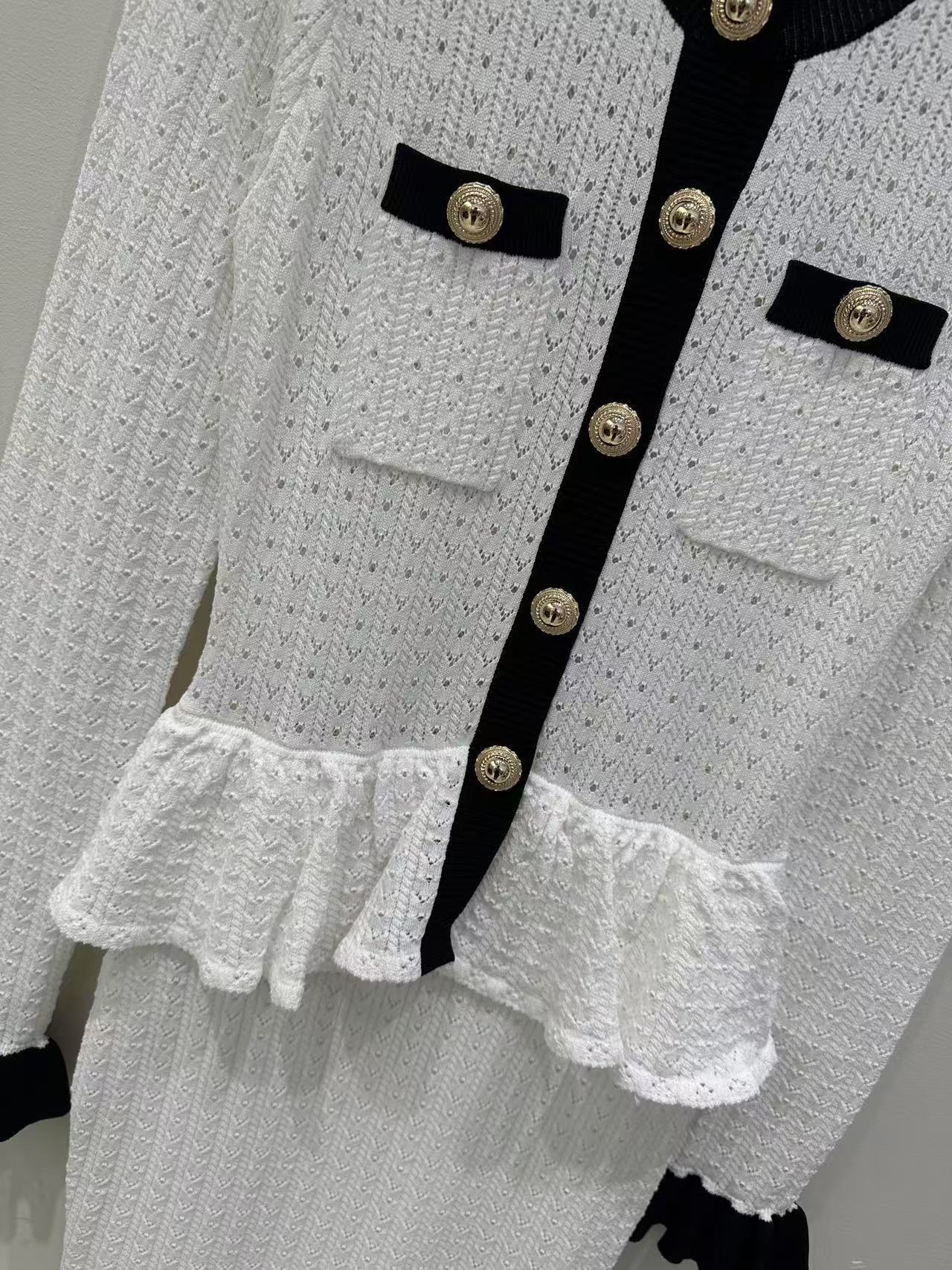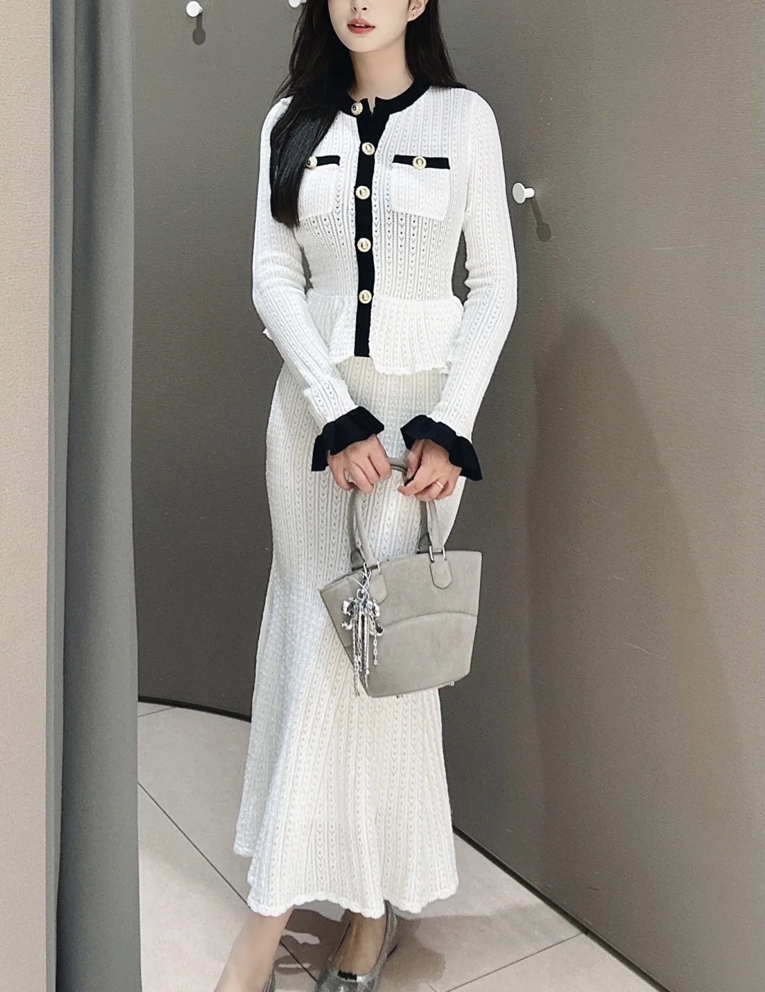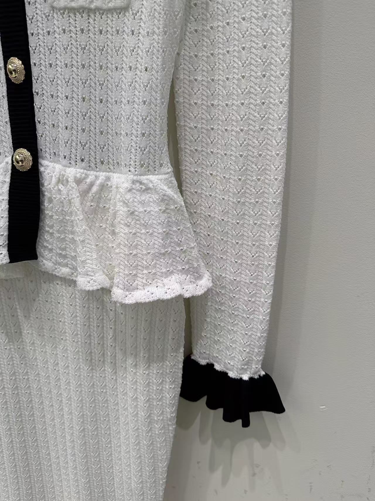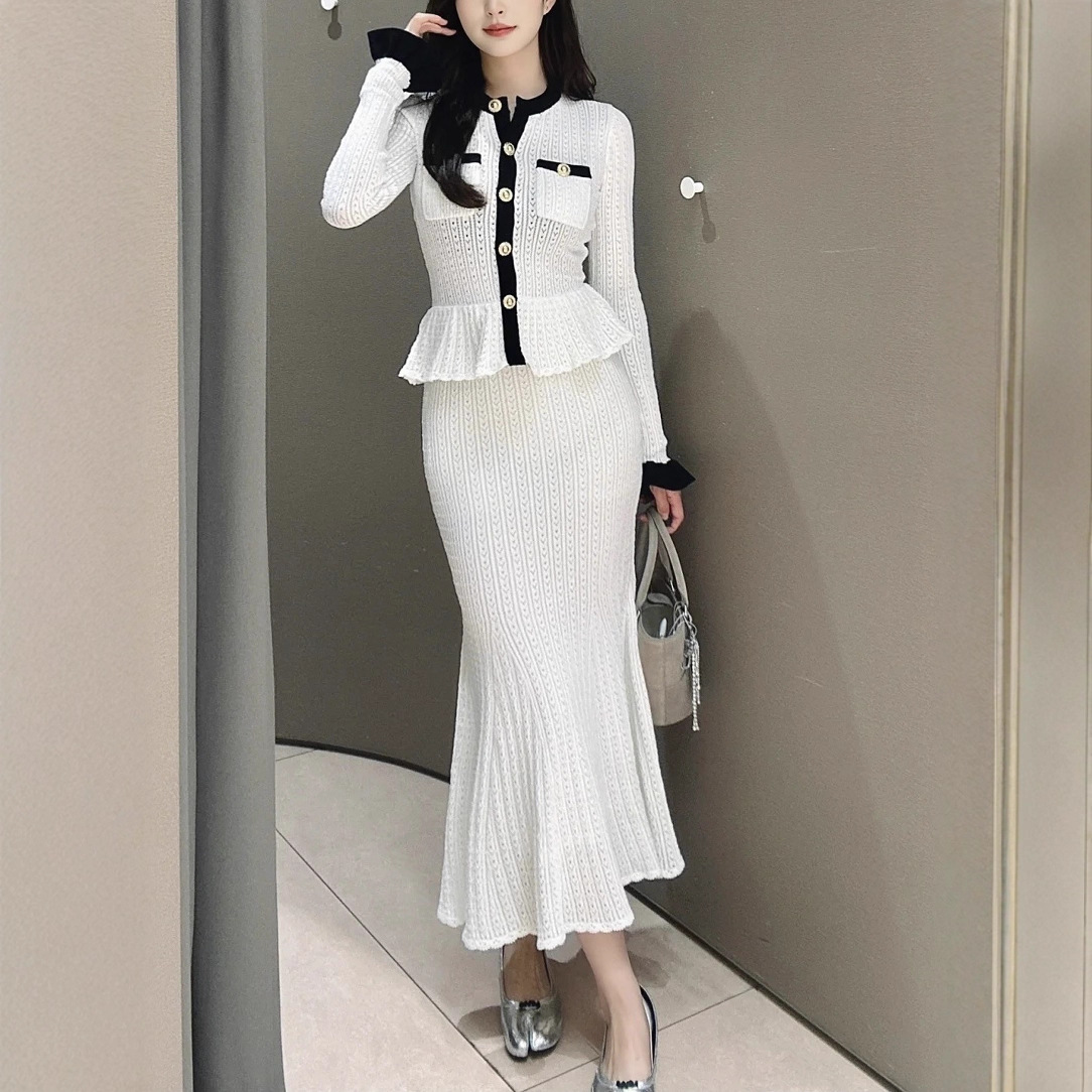 Self-Portrait Womens Autumn New Round Neck Contrasting Color Knitted Long Dress