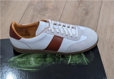 Serrated leather panels accent the sides of this sneaker shaped in a classic low-top silhouette.