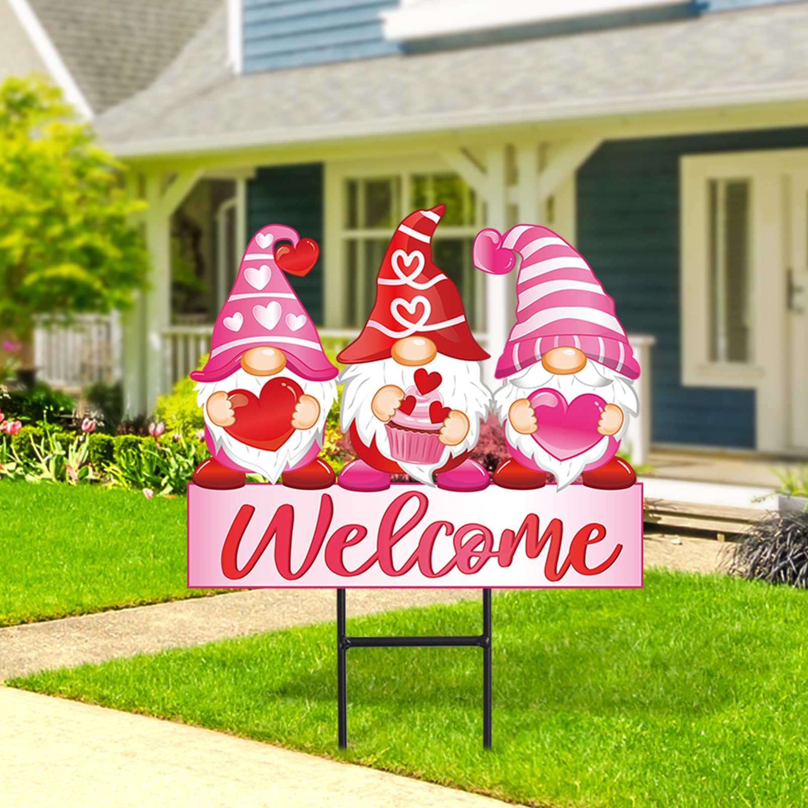 - VALENTINE OUTDOOR DECORATION: Our garden stakes adopt Valentine’s Day love gnome design, also printed with letters Welcome, the color tone is red and pink, delicate and sweet, full of romantic vibe, bring you a lot of joy and happiness