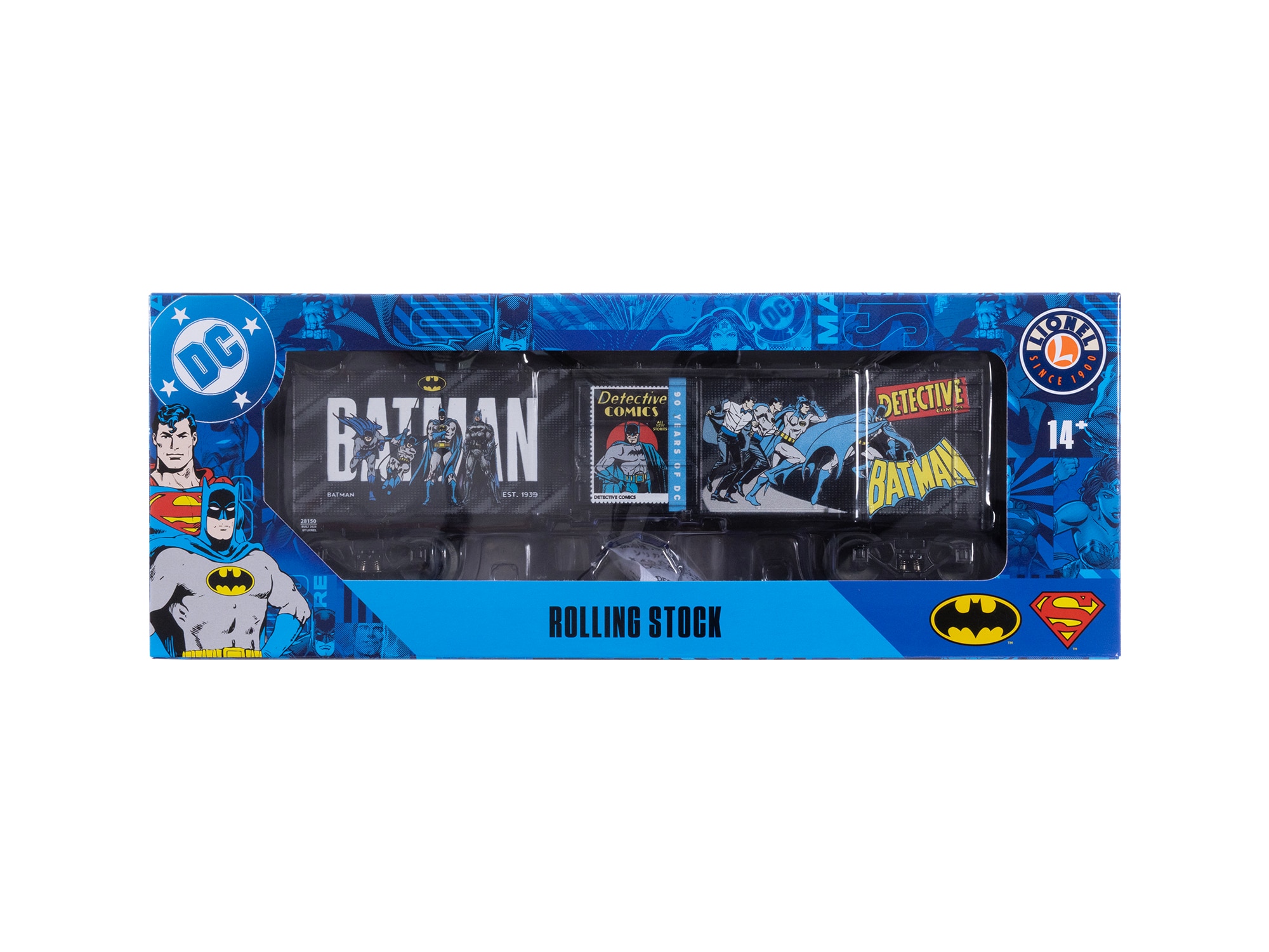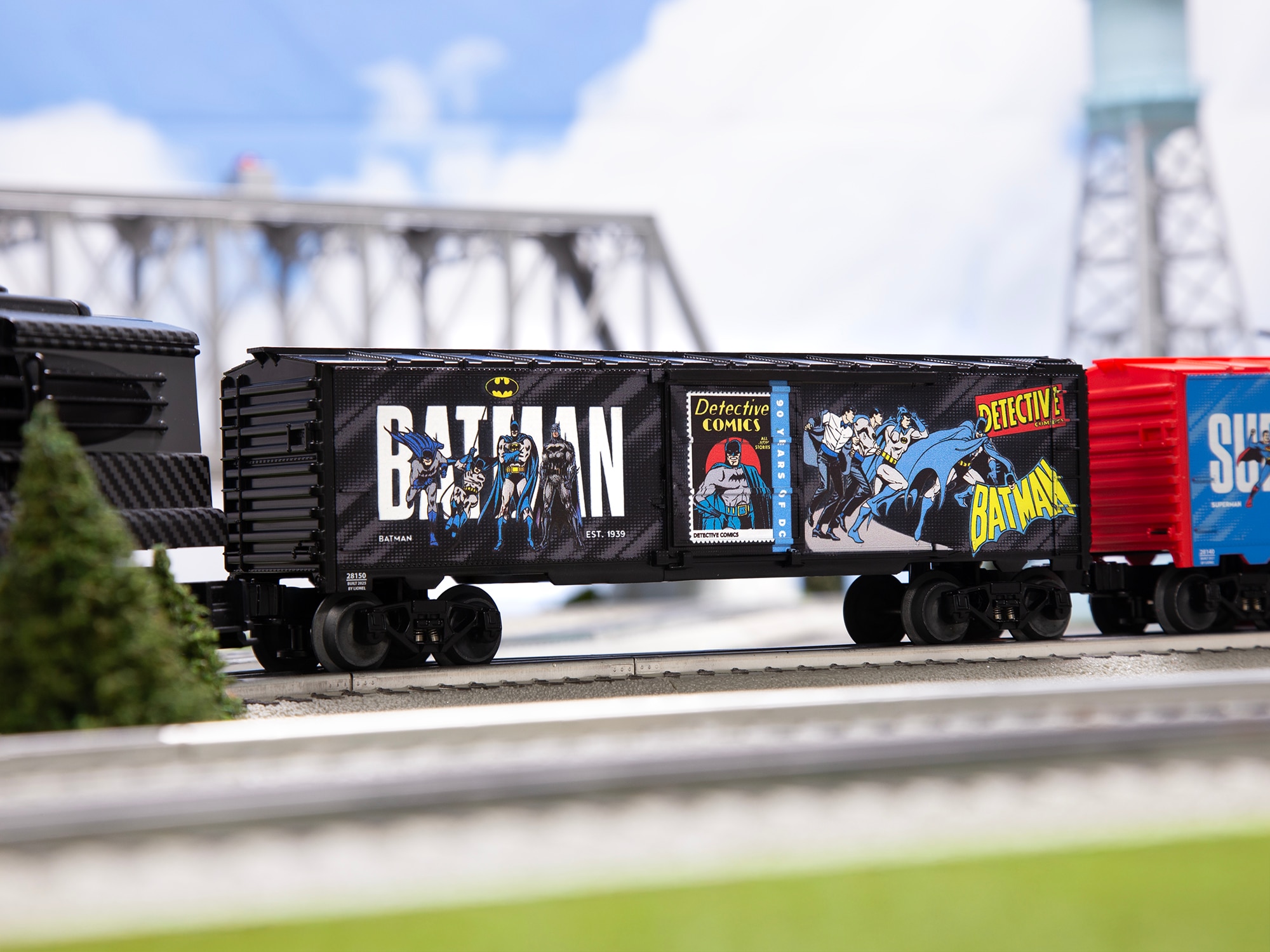 This is a Lionel 2528150 O DC 90th Batman Boxcar. Features: Die-cast metal trucks. Operating couplers. Opening doors.