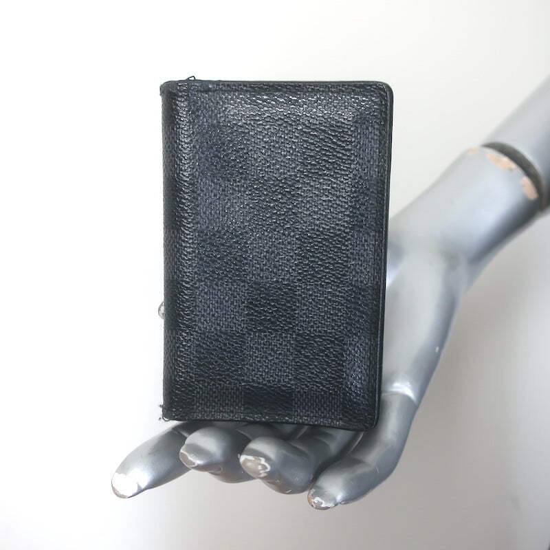 Pre-loved. Wear on (center) corners and a couple of stitches have come out. Fraying along edge of outer pocket. Spots of wear on lining. Comes with dust bag.