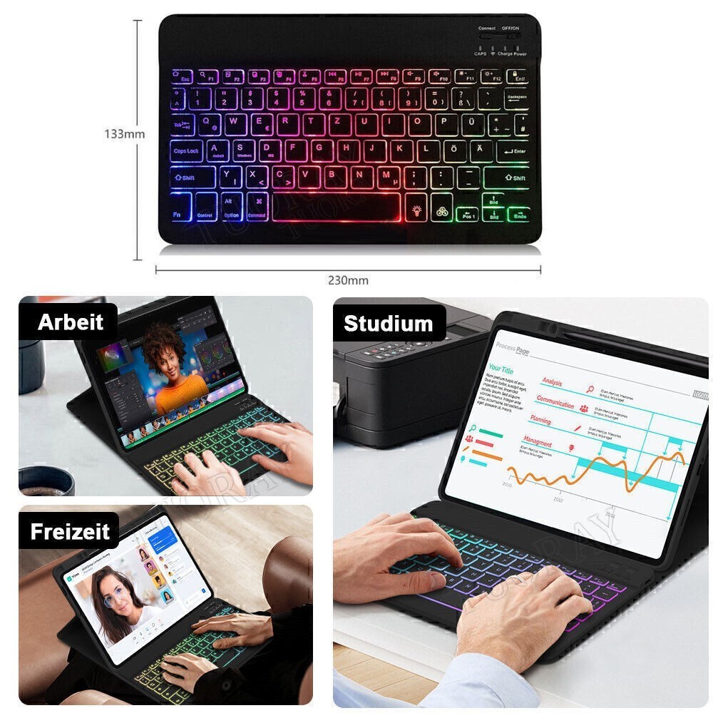 ⌨️【78 Tasten QWERTZ-Layout】- Vernünftiges QWERTY-Layout mit 78 Tasten speziell für iPads, einschließlich Lautstärke, Musiksteuerung, Helligkeit usw., mit Stummschaltung und ergonomischem Design, gibt Ihnen ein hautähnliches Tastgefühl und bietet den ganzen Tag Komfort für Arbeit und Unterhaltung.