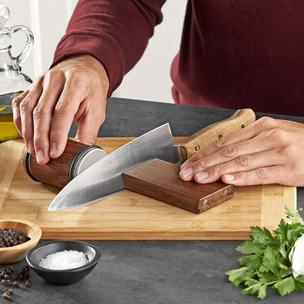 Erhältlich in zwei Winkeln, der 20°-Schleifwinkel verleiht Ihrem Messer eine lang anhaltende Schneide, die sich perfekt für kraftvolle Schneidaufgaben eignet, oder der 15°-Schleifwinkel erzeugt eine fein scharfe Schneide, die sich perfekt für filigrane Schneidaufgaben eignet.