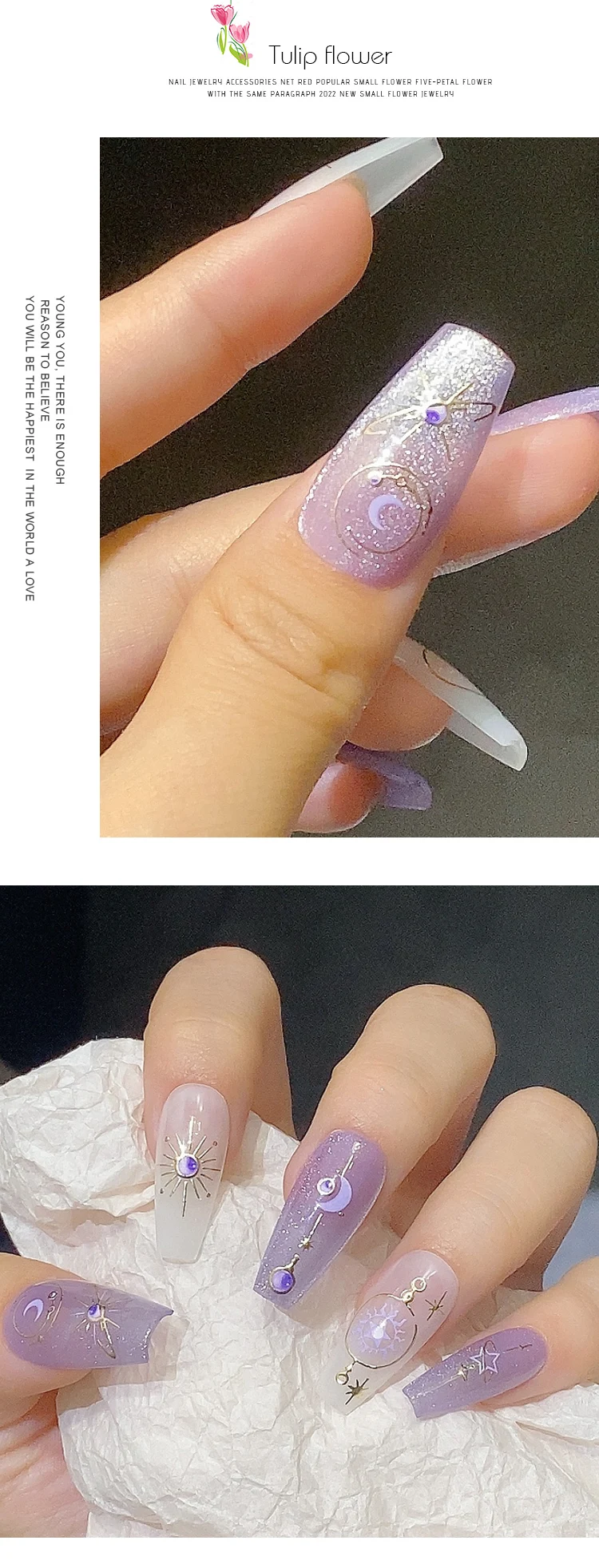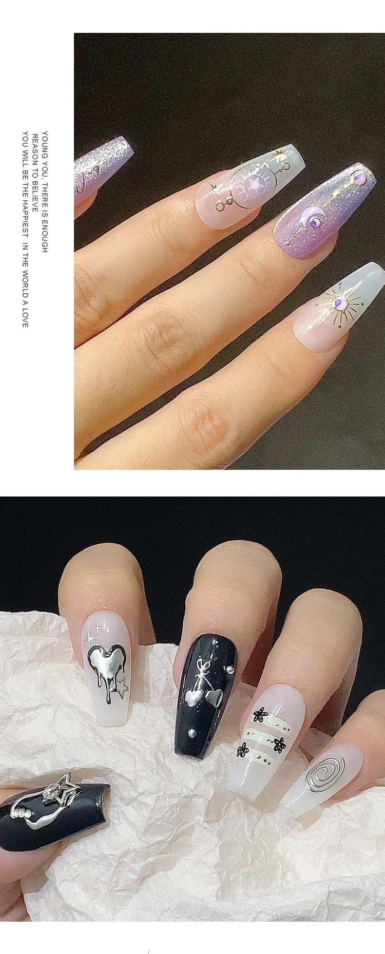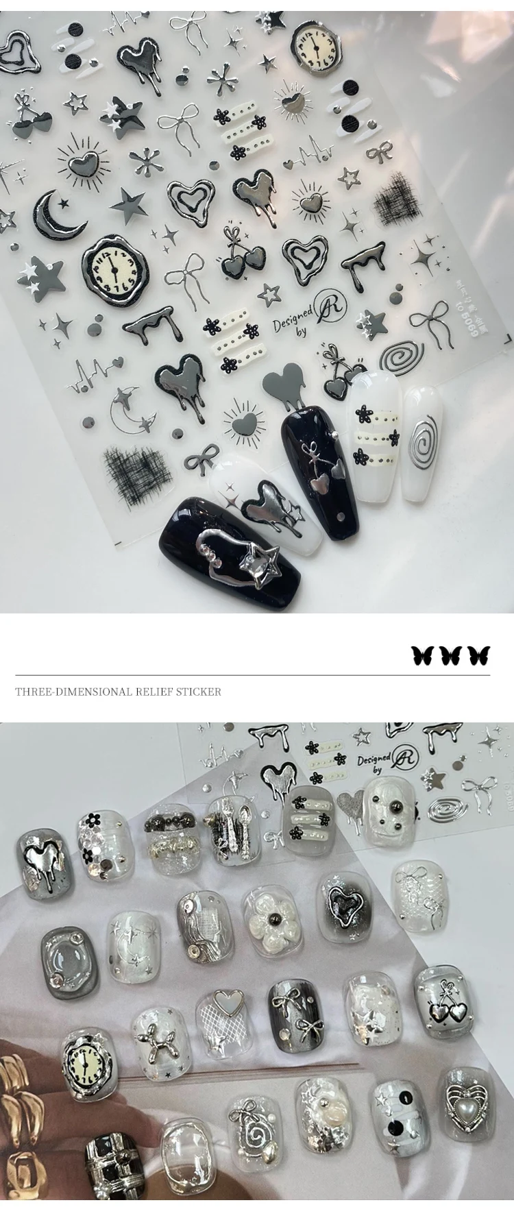 3D Cool Silver Star Heart Nail Art Stickers INS Purple Star Moon Nail Decals Kawaii Nail Sticker