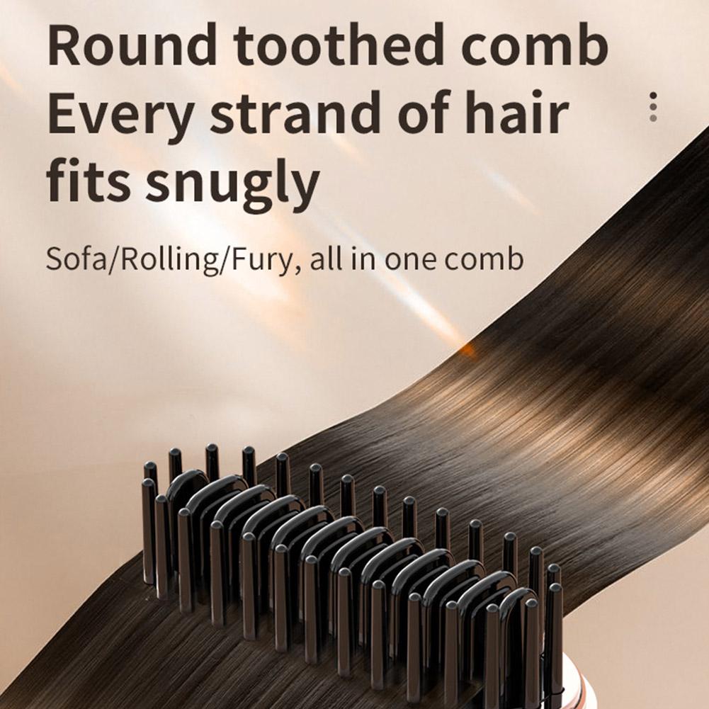 3. Dual-Purpose Versatility for Sleek Hair: Effortlessly transition between straight and subtly curled styles with this versatile dual-purpose hair tool. The carefully designed round comb teeth work to gently detangle and straighten, helping to manage unruly hair and achieve a polished, elegant look.