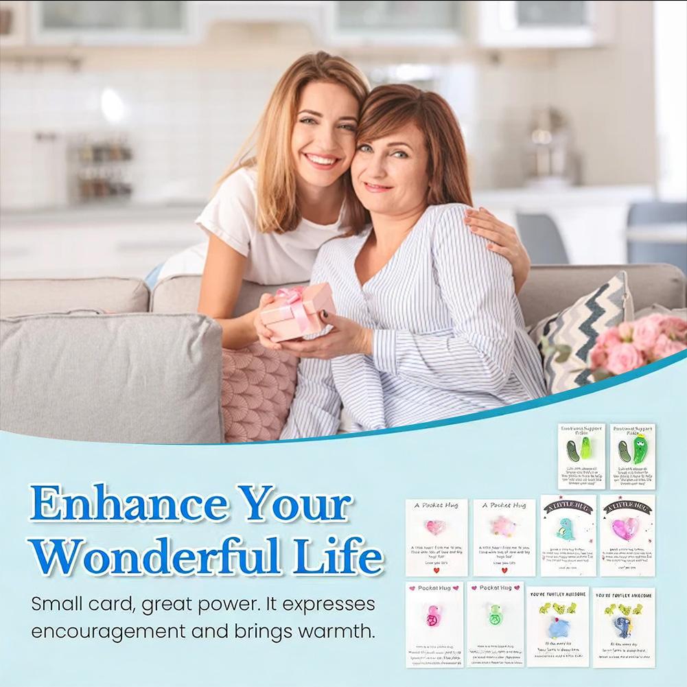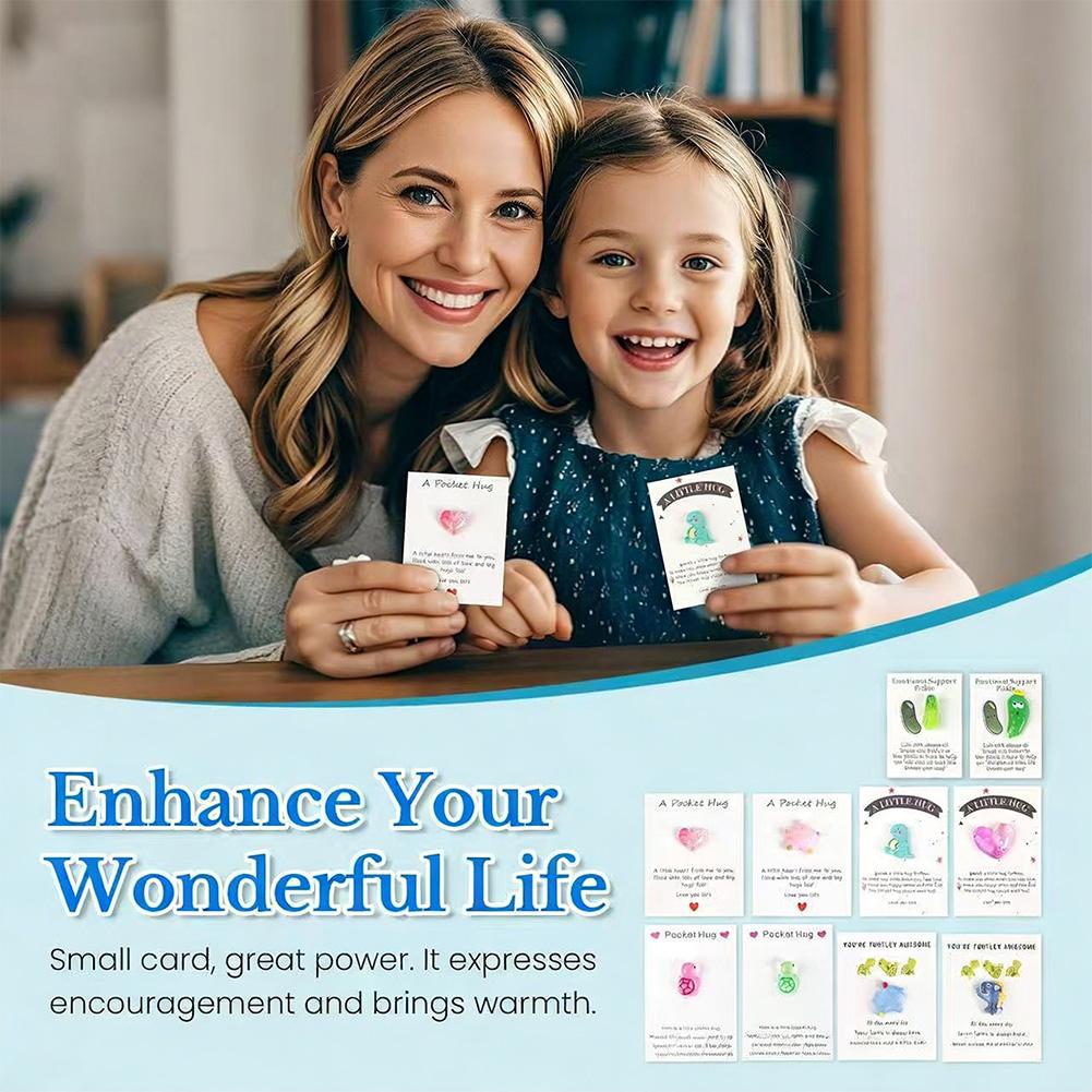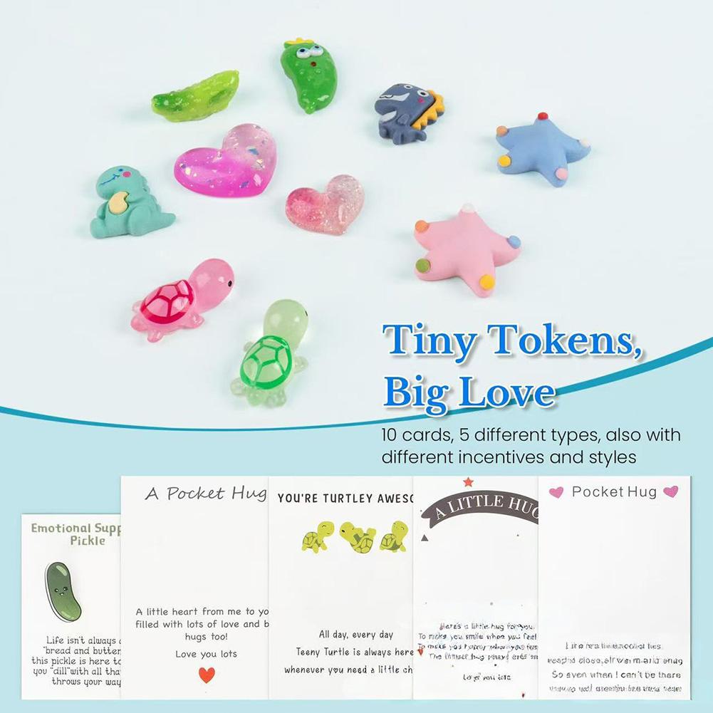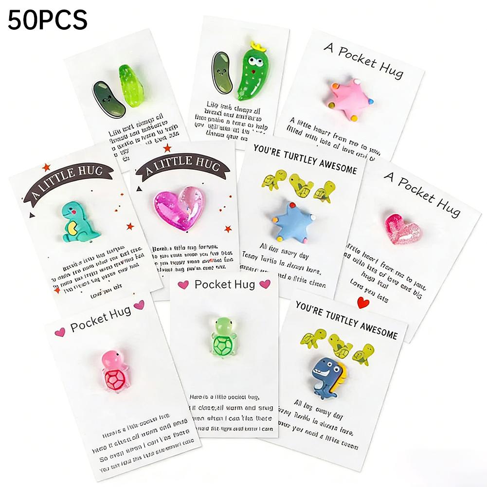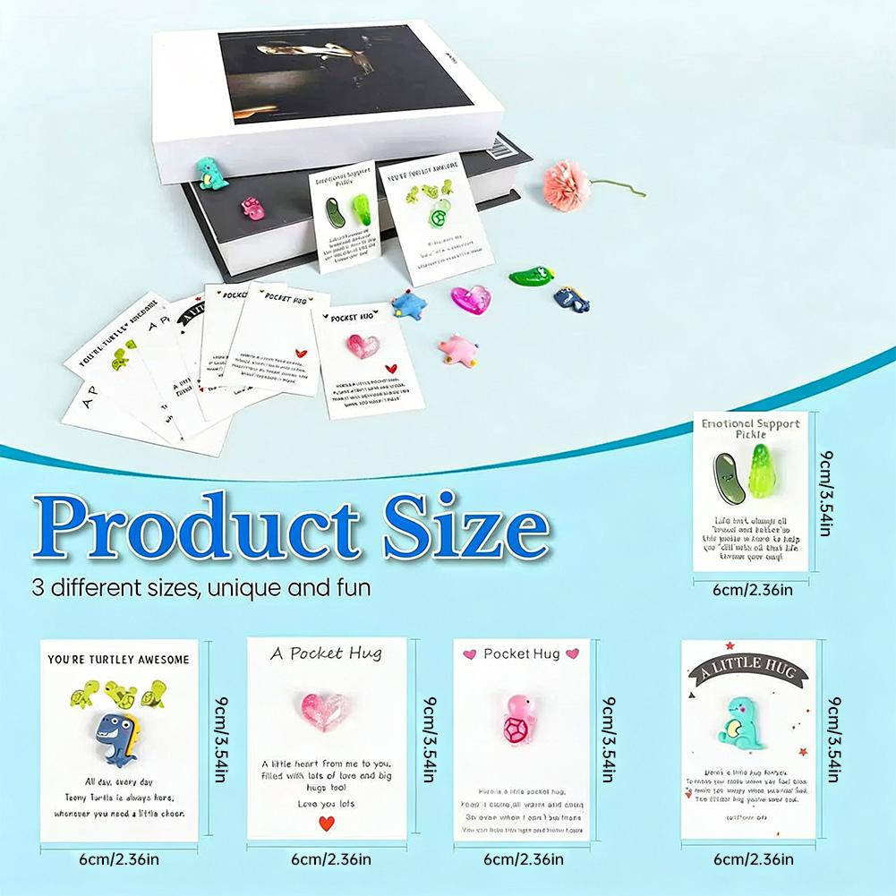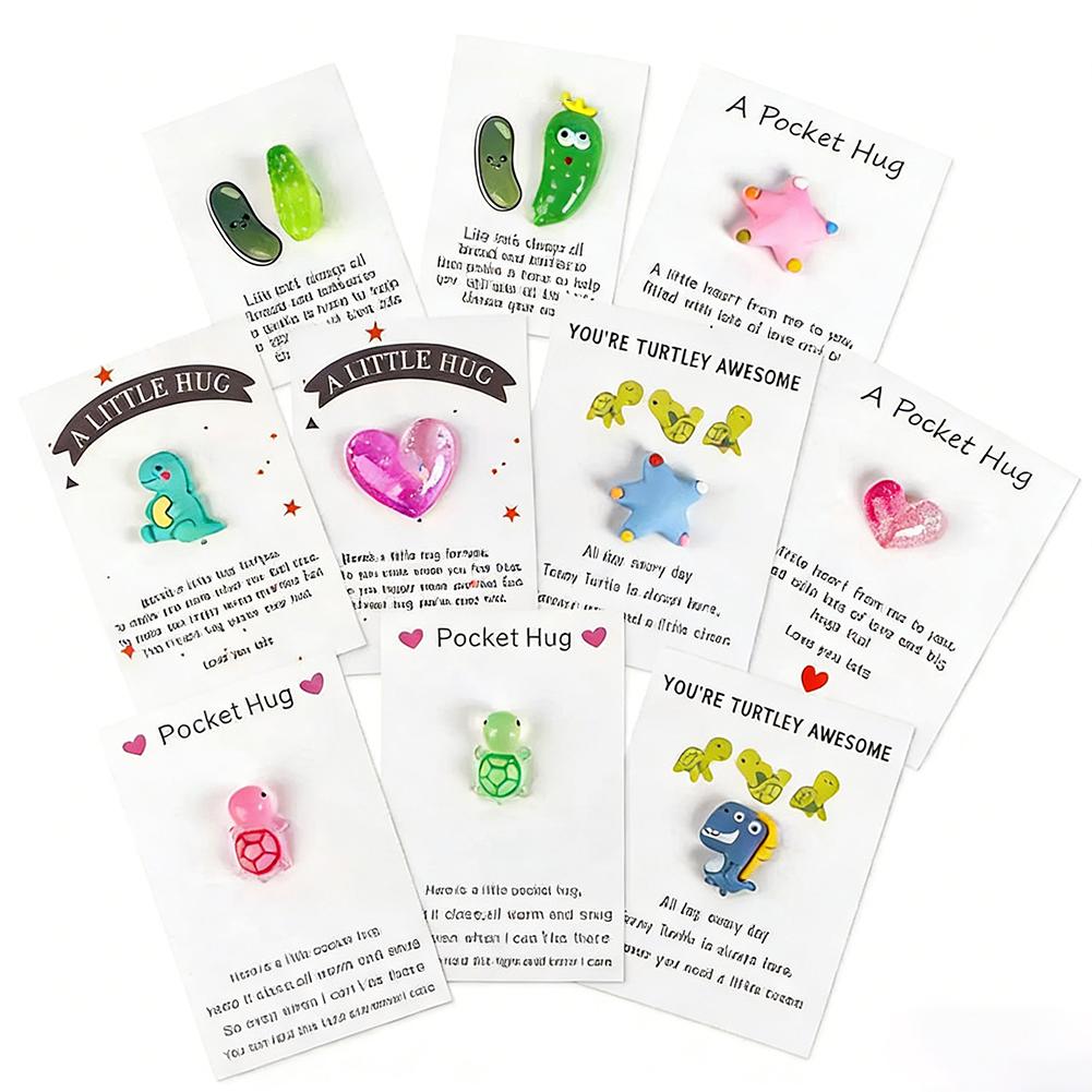 1. Heartfelt & Humorous Messages: Discover a collection of miniature tokens designed to uplift spirits and spread happiness. Each card features a unique, endearing resin figure alongside a comforting or amusing message, such as "A Pocket Hug," "You're Turtley Awesome," and "A Little Hug," perfect for bringing a smile to anyone's face.