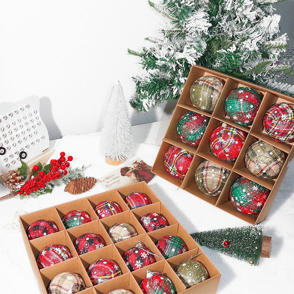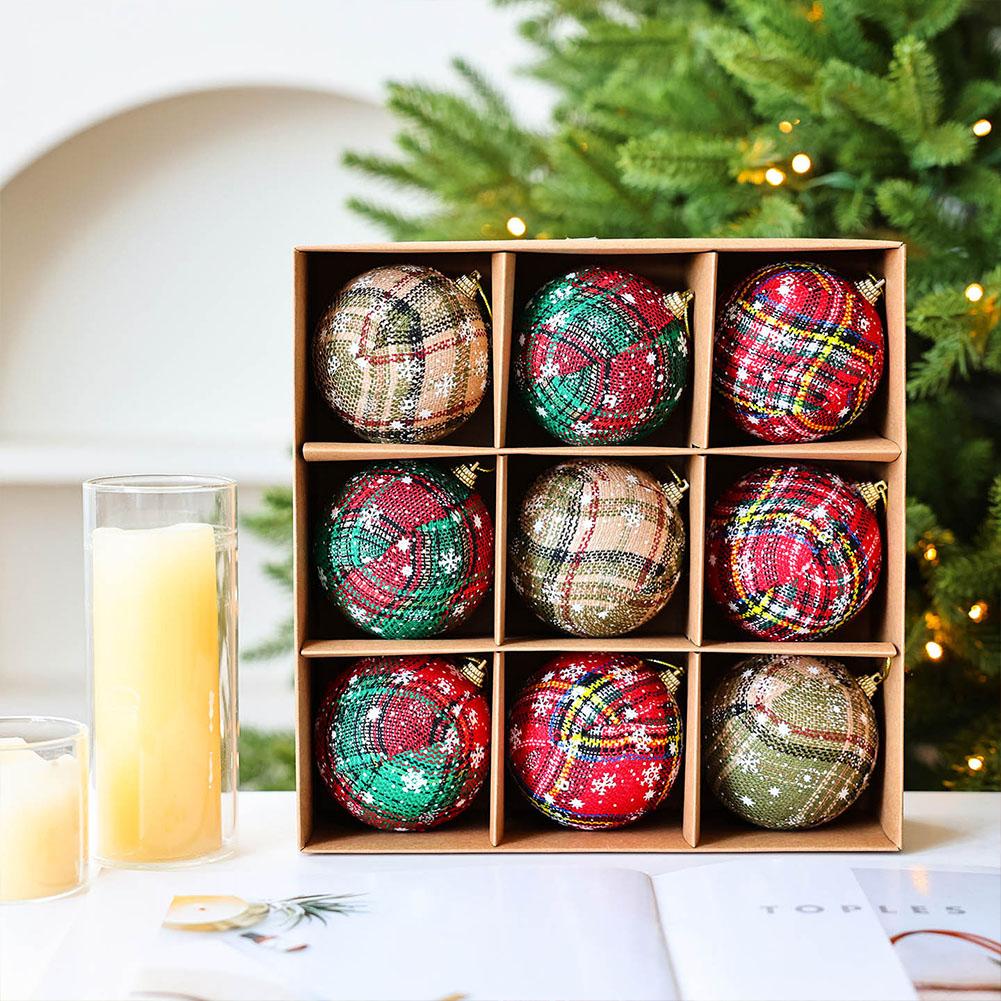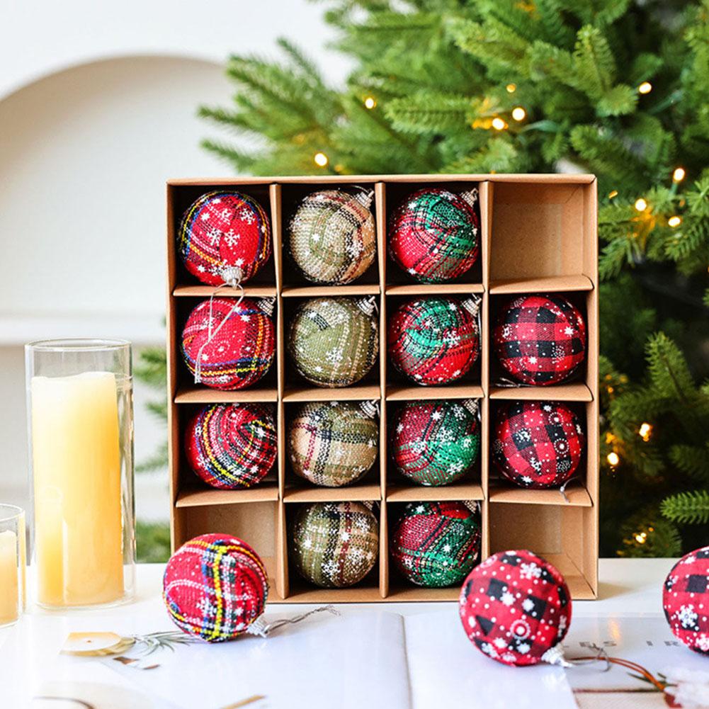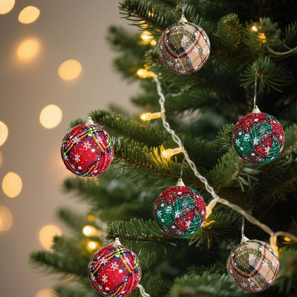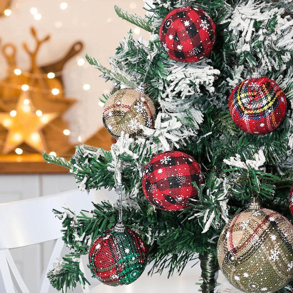 2. Crafted with high-quality fabric wrapped around sturdy spherical bases, these 2.36-inch ornaments showcase classic red, green, and black tartan patterns that evoke timeless holiday charm.