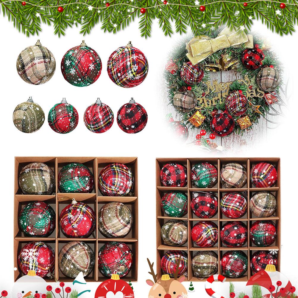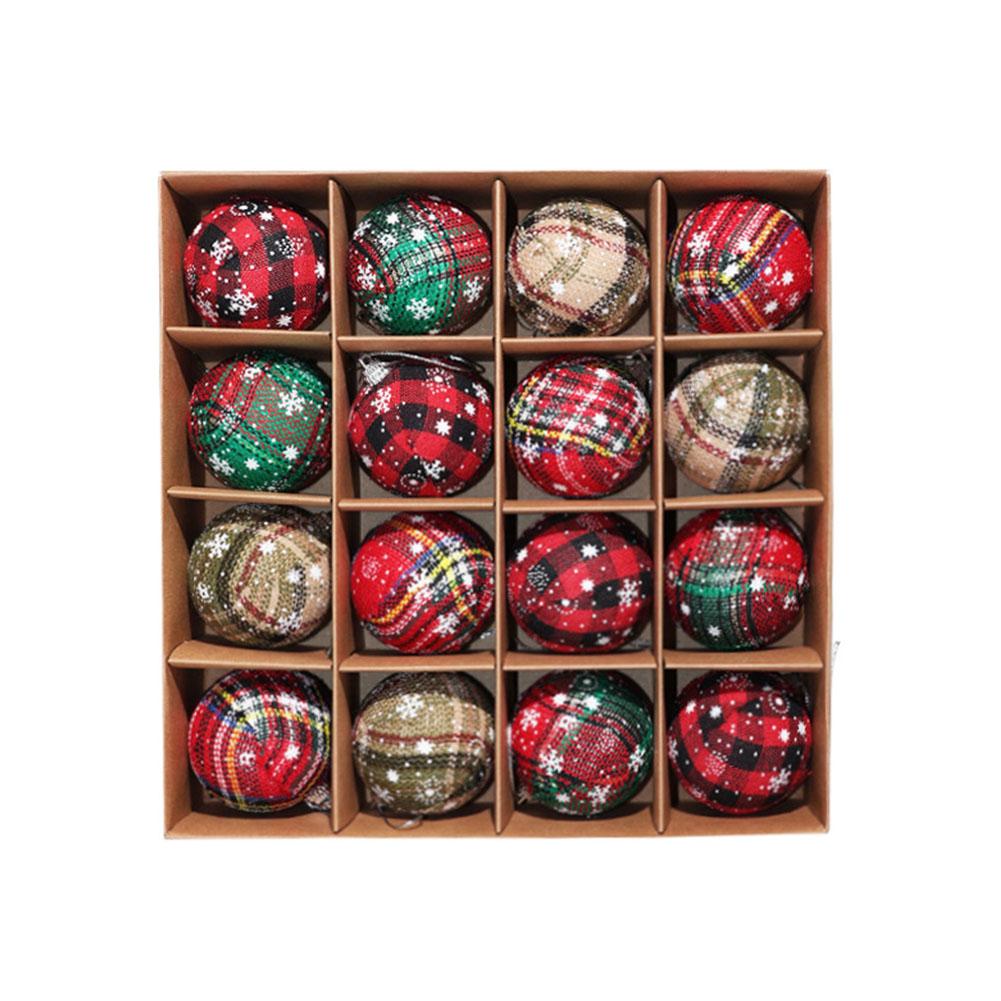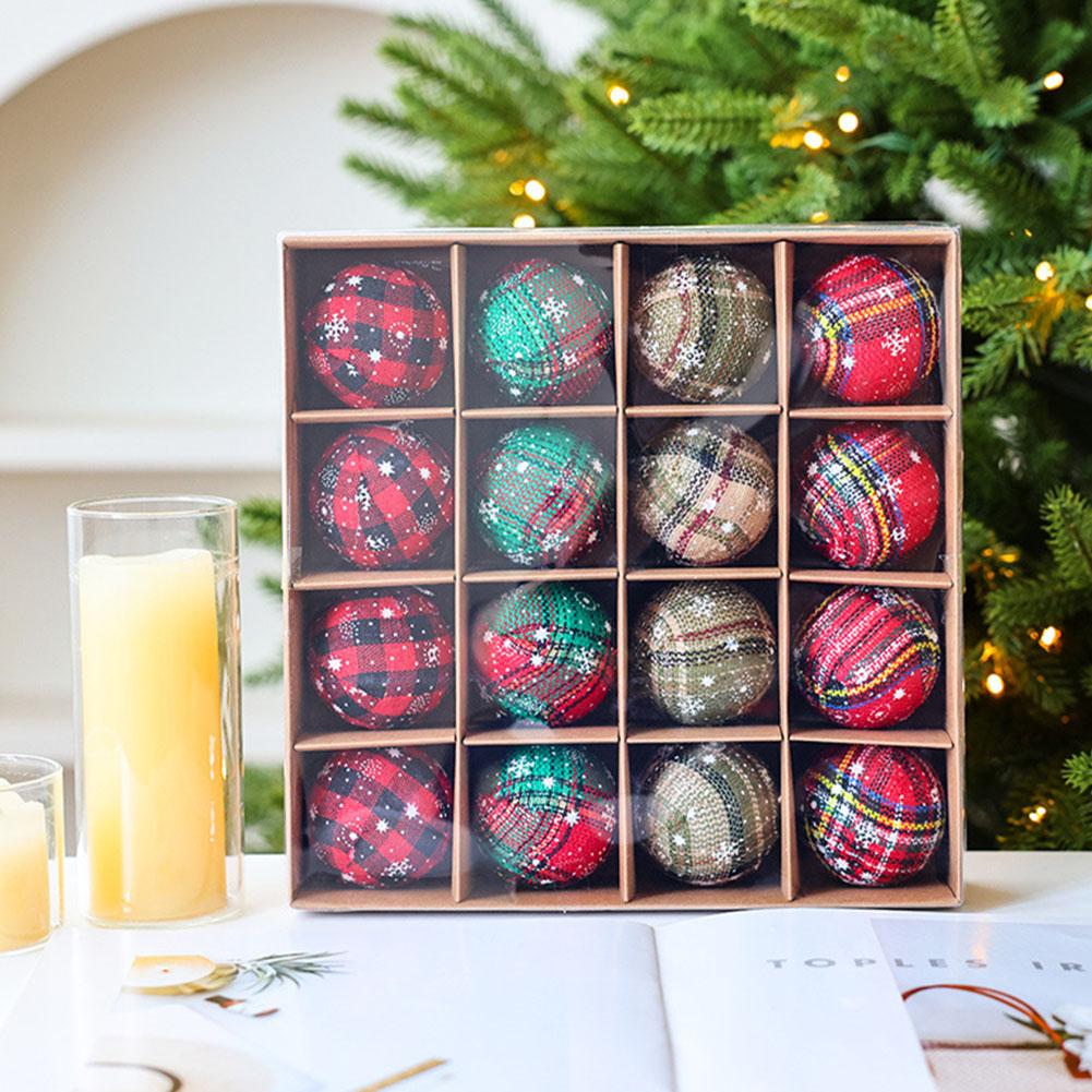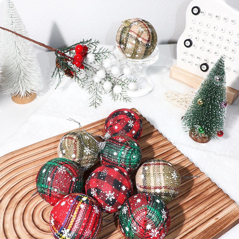 2. Crafted with high-quality fabric wrapped around sturdy spherical bases, these 2.36-inch ornaments showcase classic red, green, and black tartan patterns that evoke timeless holiday charm.