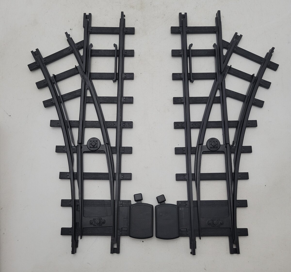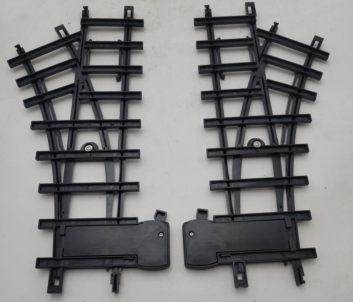 This is a Lionel 7-11832 G Left & Right Interchange Track Pack Ready To Play. This is all plastic construction.