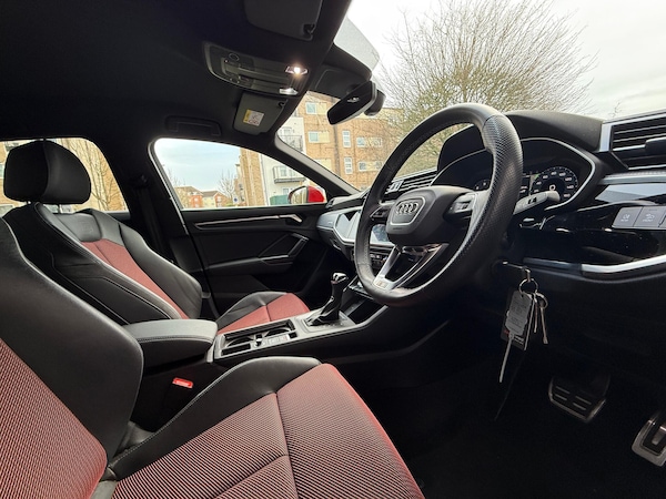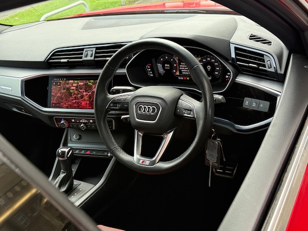 FULL AUDI SERVICE HISTORY, HEATED FRONT SEATS, SONOS SOUND SYSTEM, AUDI VIRTUAL COCKPIT - 10.25'' DISPLAY, AUDI LANE DEPARTURE WARNING, CAMERA BASED TRAFFIC SIGN RECOGNITION, SMARTPHONE INTERFACE INCLUDES WIRELESS APPLE CARPLAY/ANDROID AUTO, VOICE CONTROL SYSTEM WITH NATURAL LANGUAGE INTERACTION, SPORTS SUSPENSION, 2 USB-C PORTS WITH CHARGE AND DATA FUNCTIONS, 6 PASSIVE LOUDSPEAKERS, DAB DIGITAL RADIO MODULE, LED HEADLIGHTS WITH LED DAYTIME RUNNING LIGHTS, DUAL ZONE ELECTRONIC CLIMATE CONTROL, ISOFIX CHILD SEAT MOUNTING FOR FRONT PASSENGER WITH AIRBAG DEACTIVATION AND OUTER REAR SEAT INCLUDING TOP TETHER ATTACHMENT POINT FOR OUTER REAR SEATS, ELECTROMECHANICAL PARKING BRAKE. D USED CARS ARE OFFERED WITH A 12-MONTH WARRANTY AND ROADSIDE ASSISTANCE. AUDI SOUTHAMPTON ARE DELIGHTED TO OFFER THIS AUDI Q3 2.0 TDI 40 S LINE SPORTBACK 5DR DIESEL S TRONIC QUATTRO EURO 6 (S/S) (200 PS) IN RED WITH 20,148 MILES. WE ARE, PROUD TO BE PART OF THE HARWOODS GROUP, A FAMILY RUN BUSINESS ESTABLISHED IN 1931. WITH FOUR APPROVED AUDI RETAILERS WITHIN OUR GROUP, WE HAVE ACCESS TO OVER 400 VEHICLES. IF THIS ISN'T THE RIGHT CAR FOR YOU OUR GROUP STOCK HAS SPECIFICATION TO INCLUDE SUNROOF, LEATHER, HEATED SEATS, APPLE CAR PLAY, HEATED STEERING WHEEL, REVERSE CAMERA, REAR ENTERTAINMENT, TOWBAR, 360-DEGREE CAMERA, COMFORT & SOUND PACK, TECH PACK, PANORAMIC SUN ROOF, TOW BAR, BLACK PACK, AIR SUSPENSION, APPLE CARPLAY, ADAPTIVE CRUISE, MASSAGE SEATS, REFRIGERATOR, AWD, TECHNOLOGY PACK, HEAD UP DISPLAY, VORSPRUNG, TECHNIK, BLACK EDITION, S-LINE, S LINE, EDITION 1, TFSI, QUATTRO, SPORTBACK, LWB. OTHER COLOUR OPTIONS INCLUDING BLACK, BLUE, GREEN, SILVER, WHITE, RED, GREY, YELLOW, ORANGE. INTERIOR OPTIONS OF EBONY, BLACK, IVORY, WHITE, TAN, CREAM, OYSTER, & EURO 6 ULEZ COMPLIANT DRIVE TRAINS.