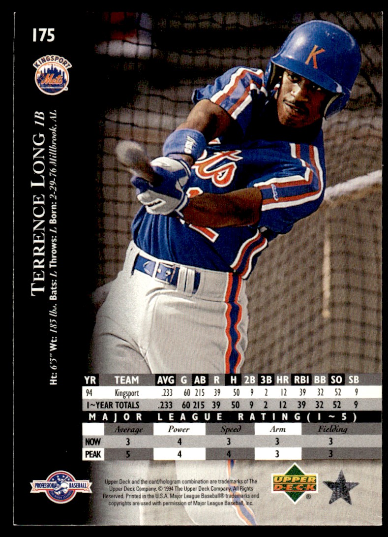 | 1995 Upper Deck Minors Terrence Long Kingsport Mets #175 |
