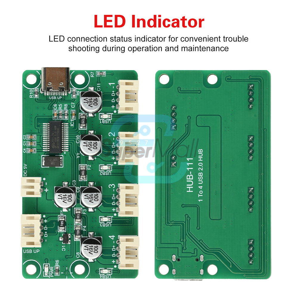 Expands one computer USB port into four USB ports. Supports USB 2.0 Full/High Speed (480Mbps). Features overcurrent self-resetting fuses on both input and output. Includes data connection and power indicator lights. Offers comprehensive protection, high-speed transfer, and stable reliability, suitable for industrial-grade applications.