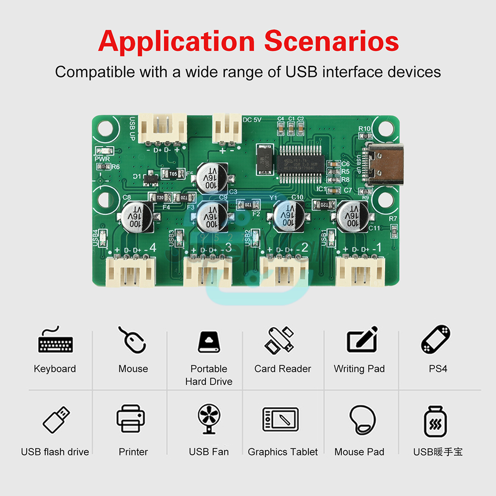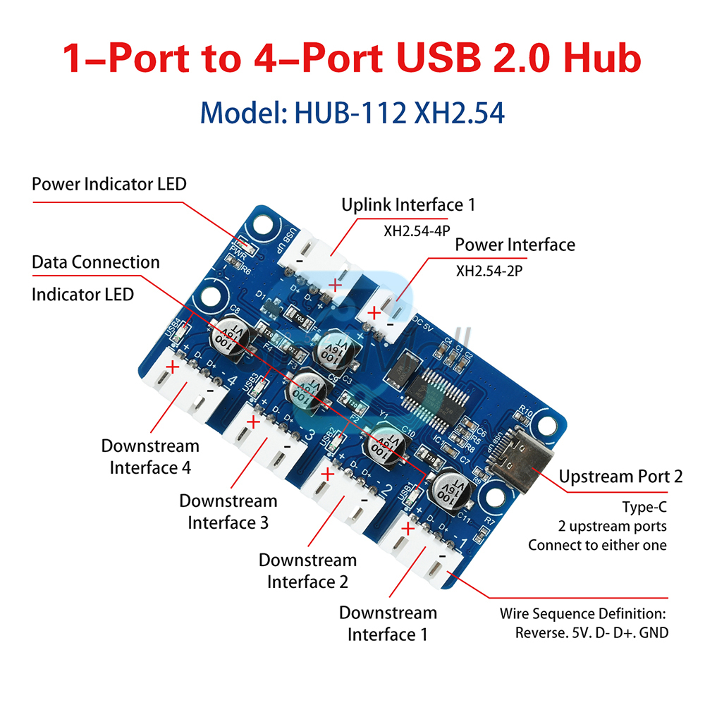 Upstream Interface: Connects to host USB port (e.g., computer, industrial PC, smartphone)