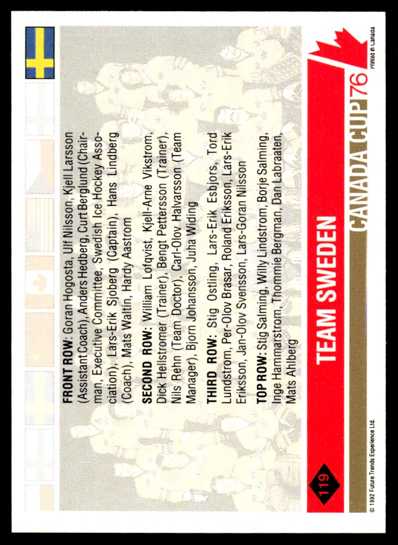 | 1992-93 Future Trends '76 Canada Cup Team Sweden Sweden #119 |