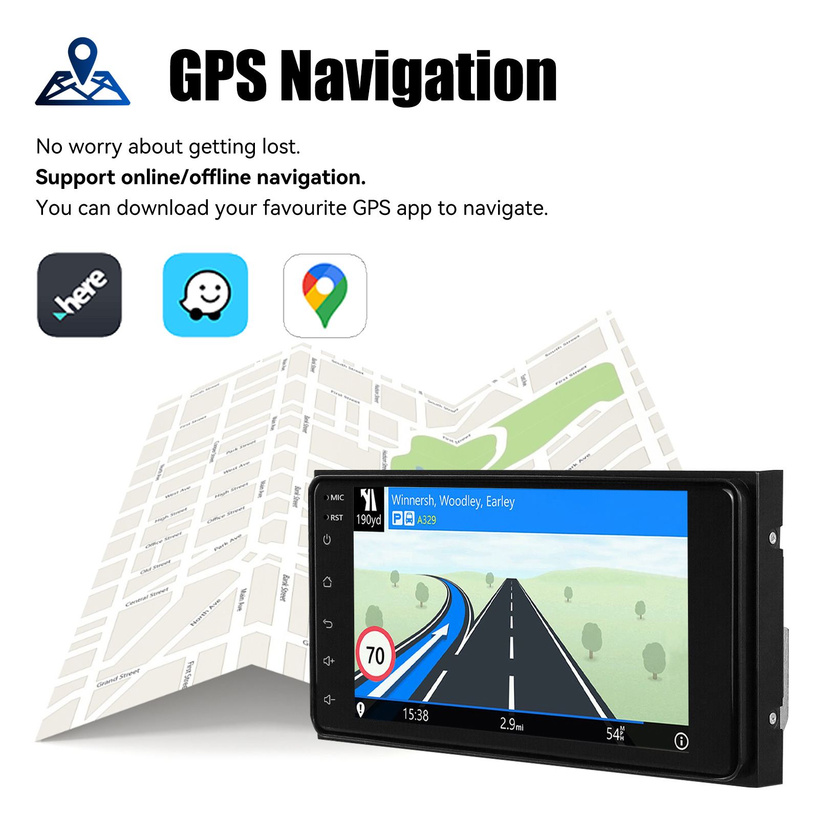 2GB RAM and 64GB ROM allows you to download your favorite apps and videos, so that driving is no longer boring. No additional frame, no cable change, plug and play.