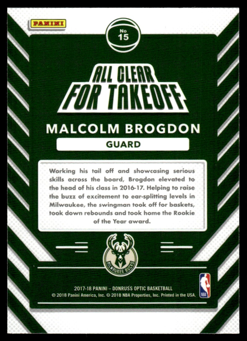 | 2017-18 Donruss Optic All Clear for Takeoff Malcolm Brogdon Milwaukee Bucks #15 |