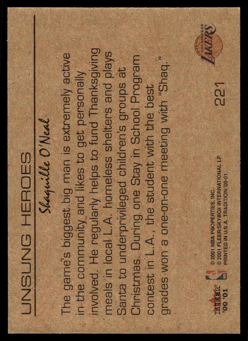 | 2000-01 Fleer Tradition Shaquille O'Neal Los Angeles Lakers #221 |
