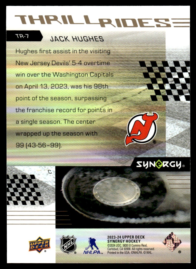 | 2023-24 Upper Deck Synergy Thrill Rides Jack Hughes New Jersey Devils #TR-7 |