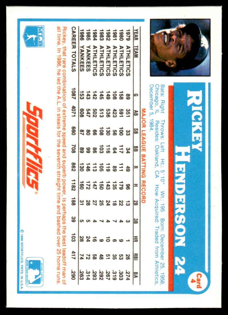 | 1987 Sportflics Rickey Henderson New York Yankees #4 |