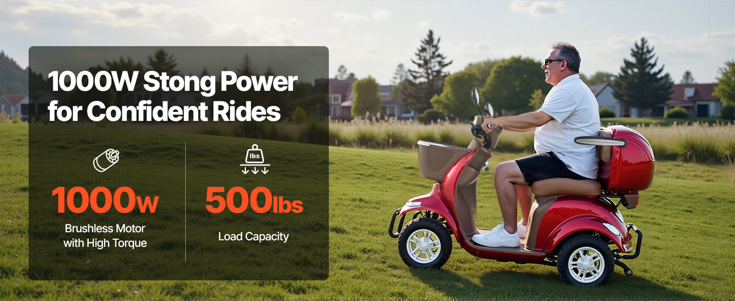 - Prestazioni eccellenti: questo scooter elettrico per adulti e anziani è equipaggiato con un motore brushless da 1000 W ad alta coppia, progettato per garantire una lunga durata e richiedere poca manutenzione.