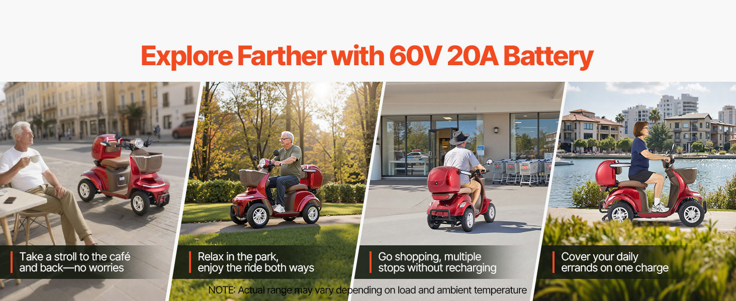- Guida sicura e affidabile: questo scooter elettrico a quattro ruote è dotato di una batteria ricaricabile al piombo da 60 V 20 A, garantendo un utilizzo prolungato e un'autonomia fino a 35 km con una singola carica completa.