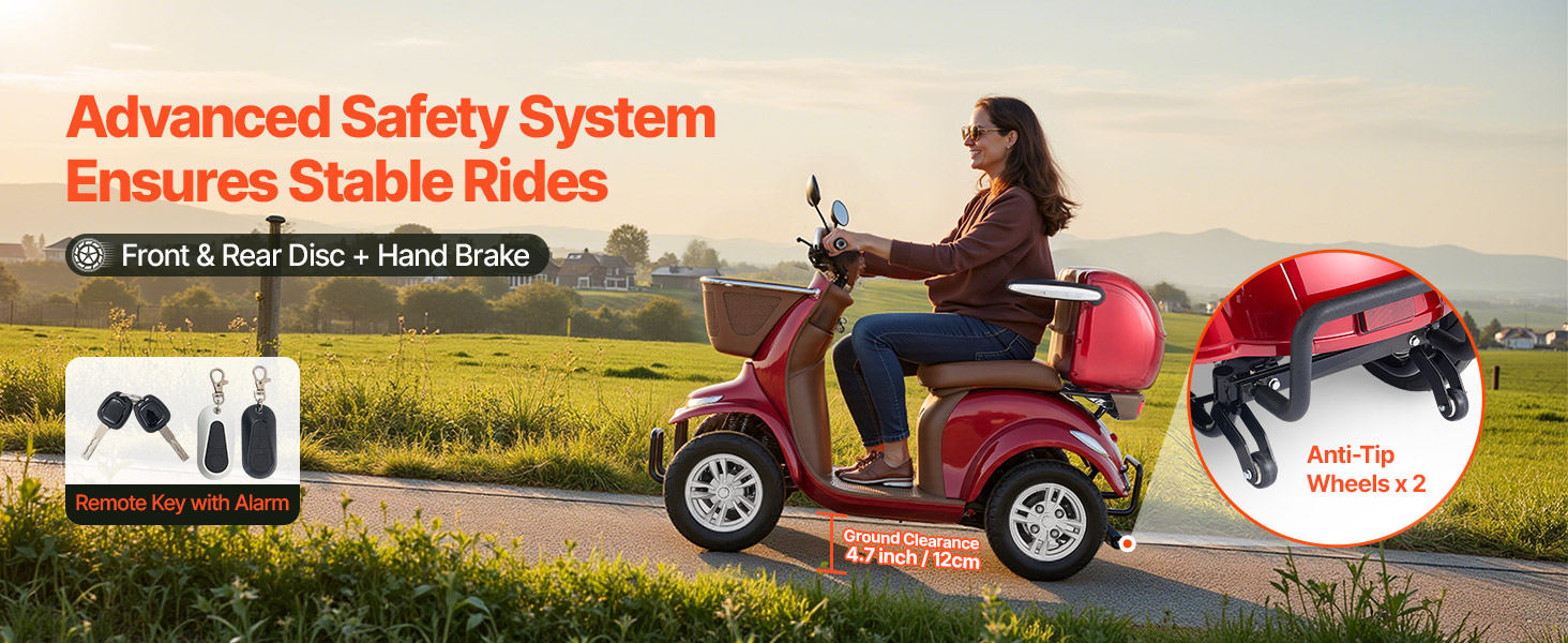 - Progettazione ergonomica: questo scooter elettrico resistente per adulti include un sedile confortevole con supporto per la schiena. I braccioli possono essere sollevati o abbassati per agevolare l'accesso e l'uscita.