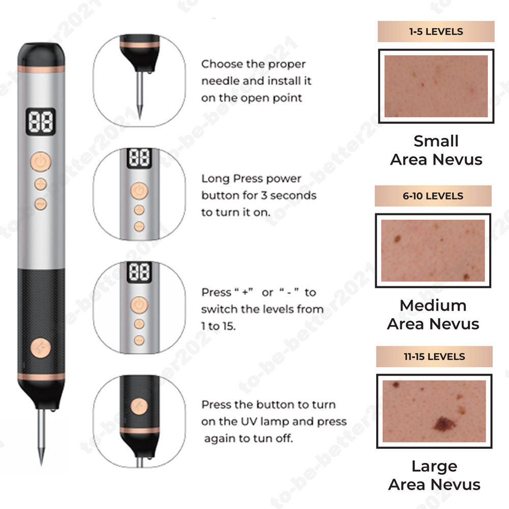 Quickly and safely remove moles, spots, warts, tattoos, fat granules, scabs, granulation, etc. without scars, skin damage, or bleeding.