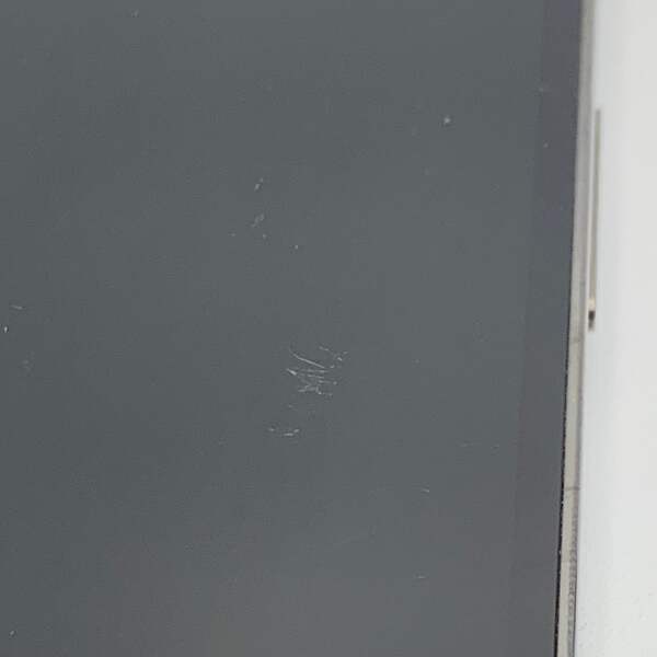 The back shows visible signs of wear, including noticeable scratches, scuffs, or minor dents but does not affect functionality. The bezel has similar signs of wear, while the charging port is clean and fully functional. The LCD is in excellent condition with vibrant colors. However, the screen has scratches and a minor crack that may affect the overall visual experience.