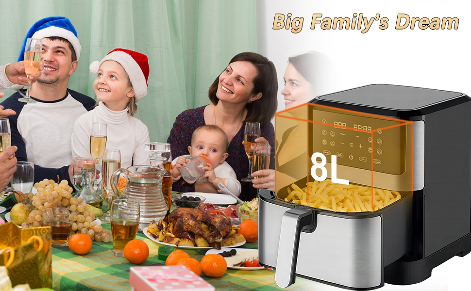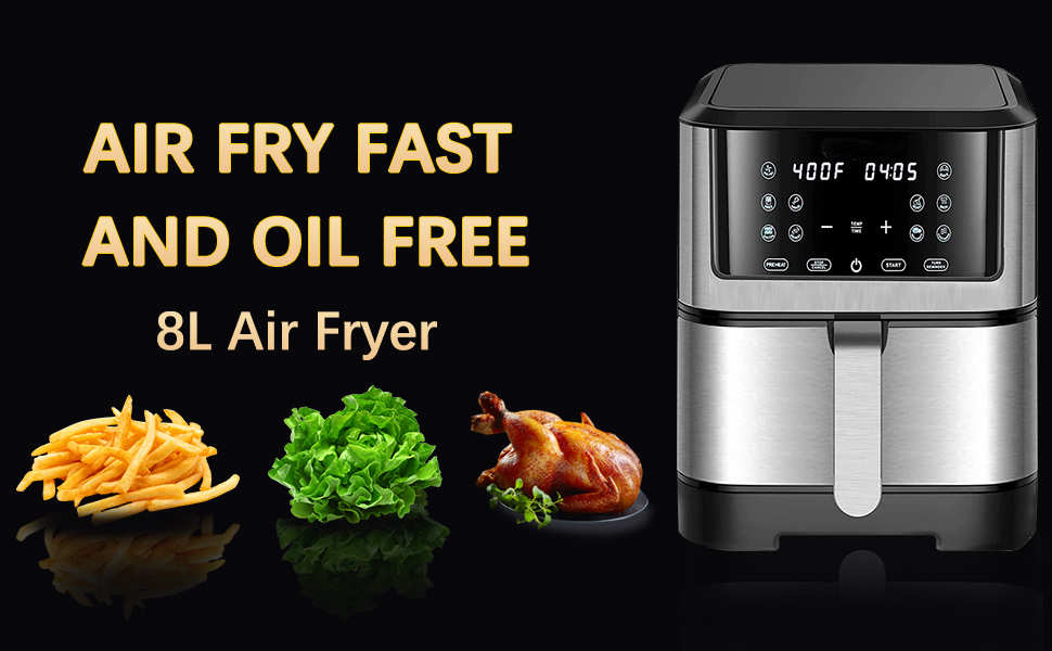 Digital Air Fryer Stainless Steel Digital 8QT 1500W Oil Free Frying Cooker