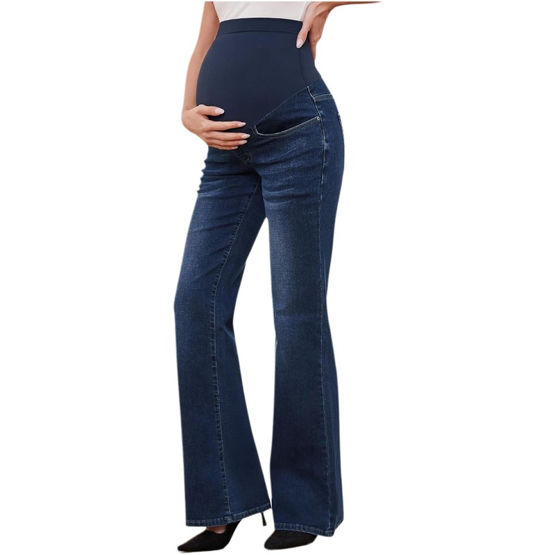 Made from a blend of denim and cotton, these jeans are durable and comfortable, providing a soft touch against the expectant mother’s skin.