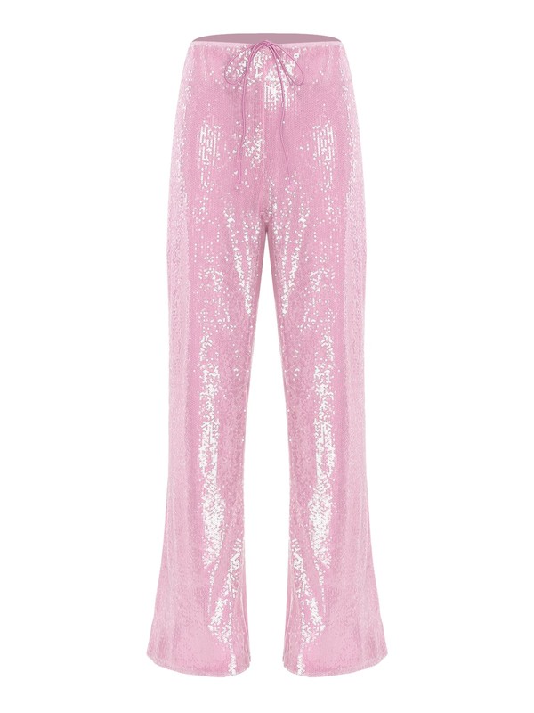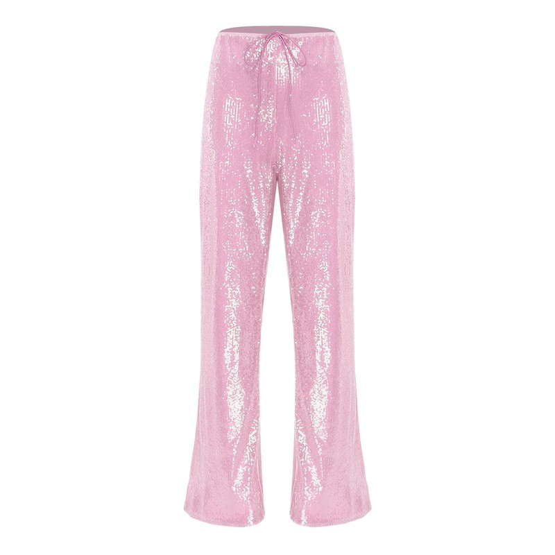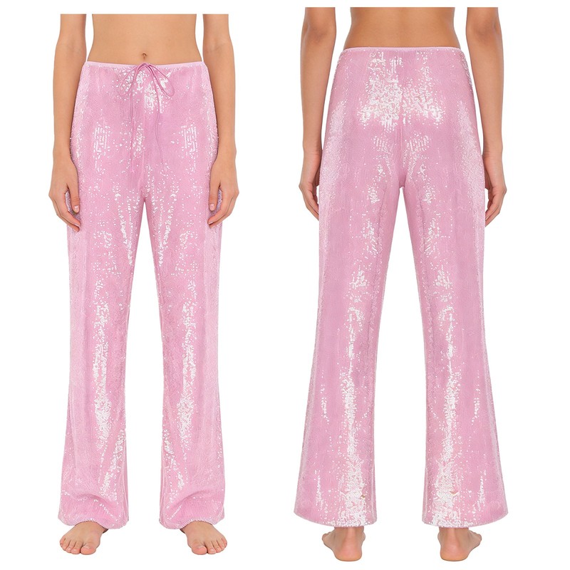 Made from a blend of polyester and sequins, these pants are both durable and have a dazzling sparkle, providing a unique texture and look.