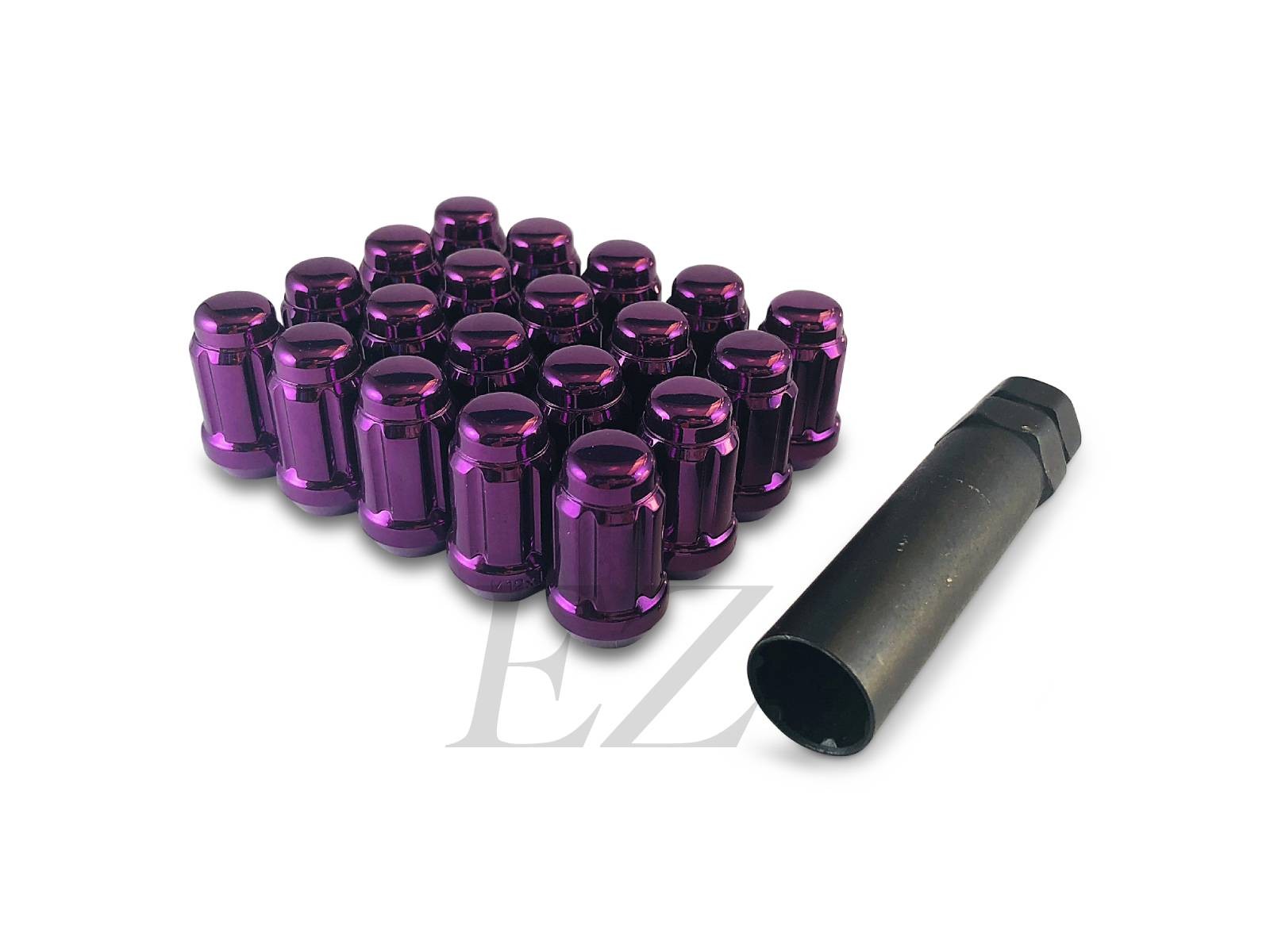 - Closed-end purple spline drive acorn lug nuts