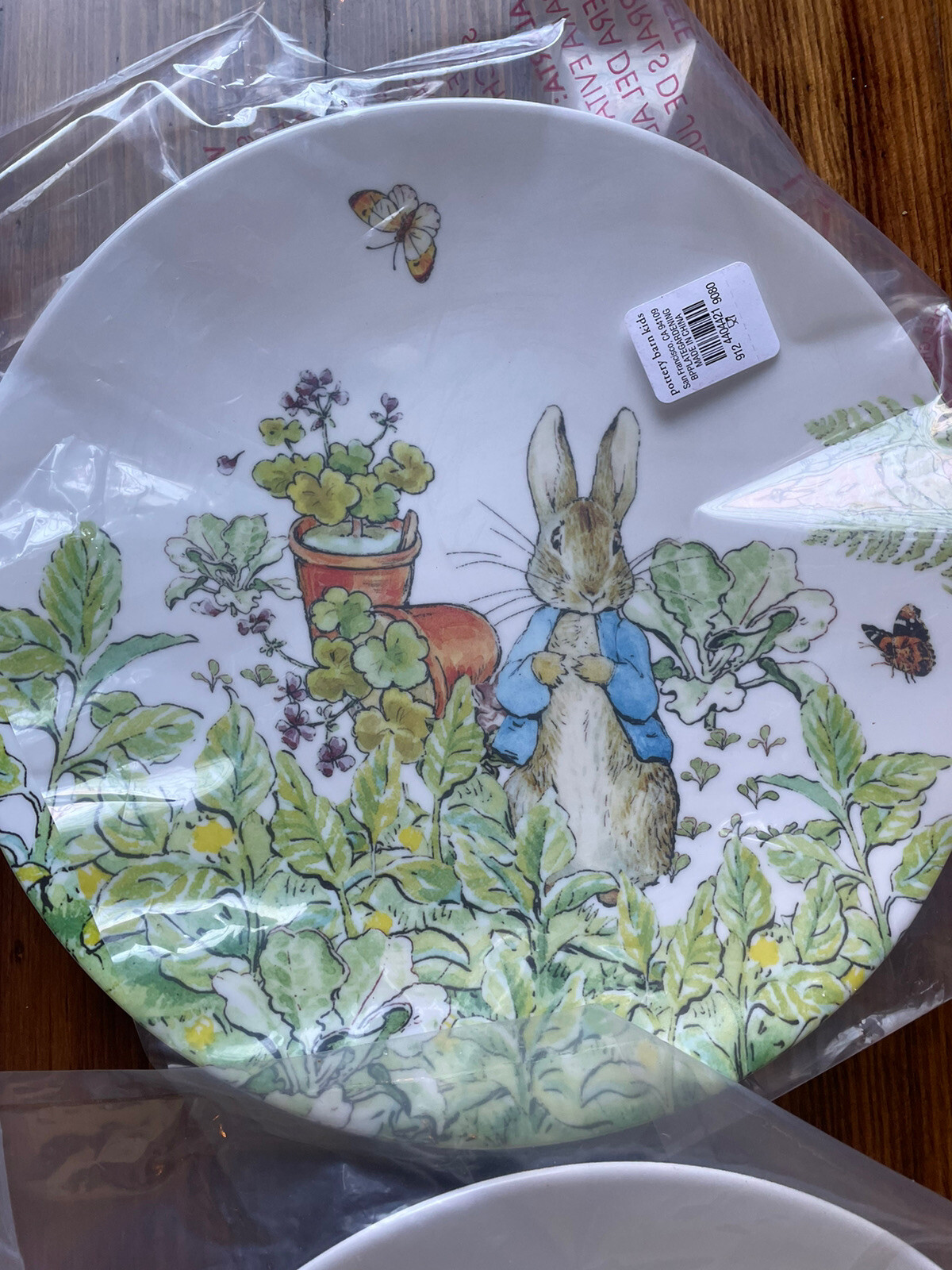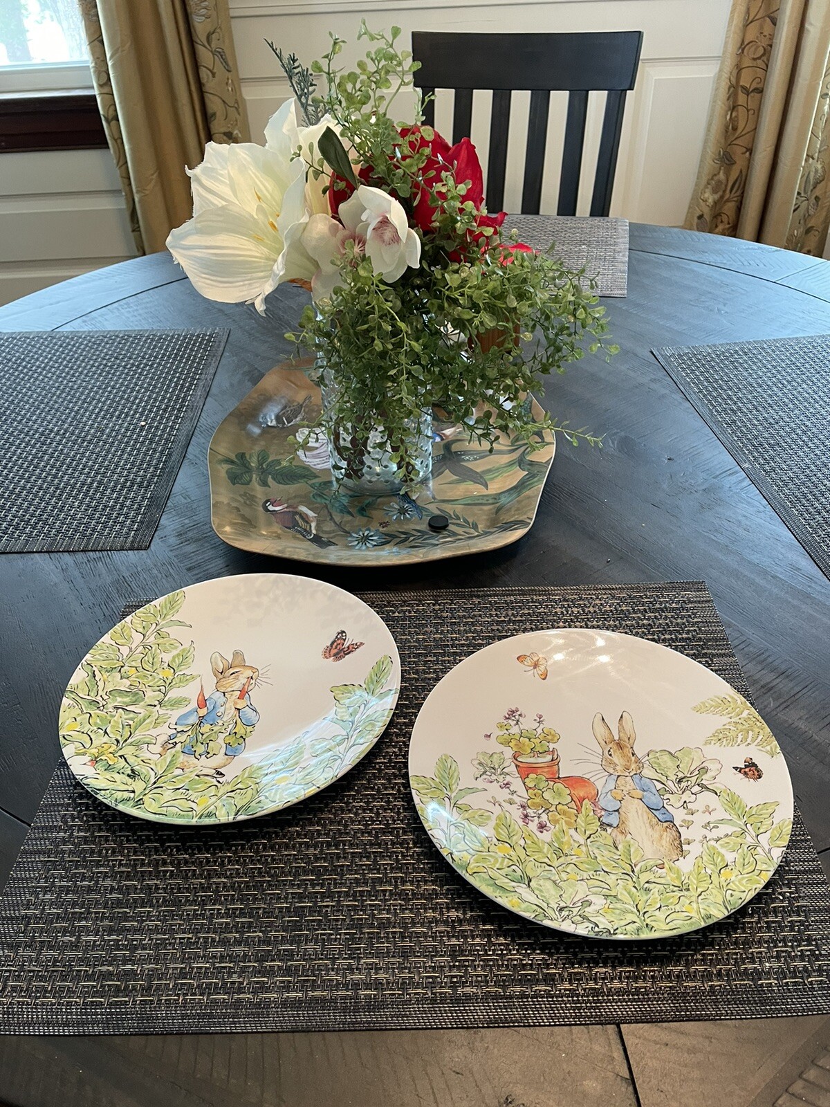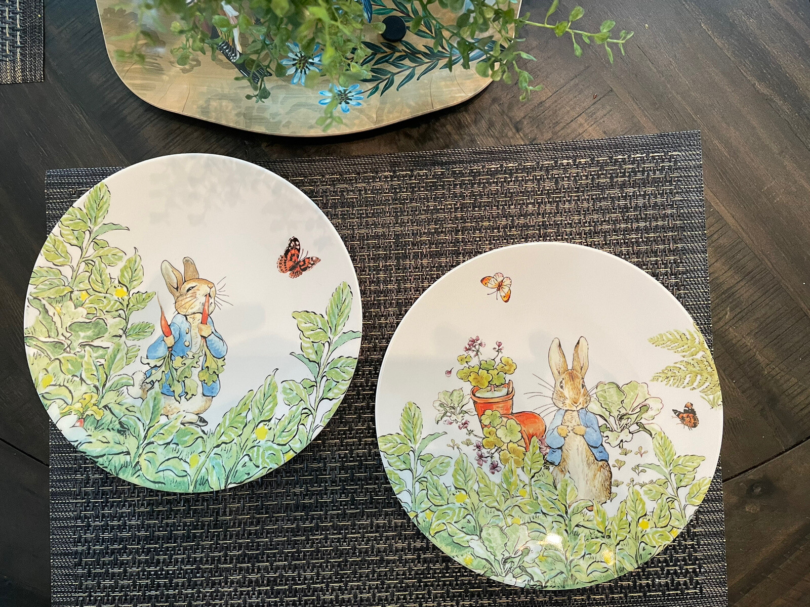 1. SET 2 PETER Rabbit Bunny rabbit plates each a different scene Spring and EAster pattern.