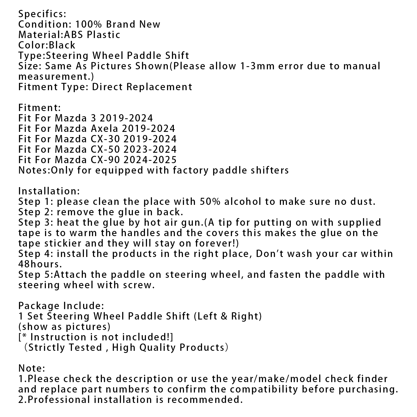 Notes:Only for equipped with factory paddle shifters