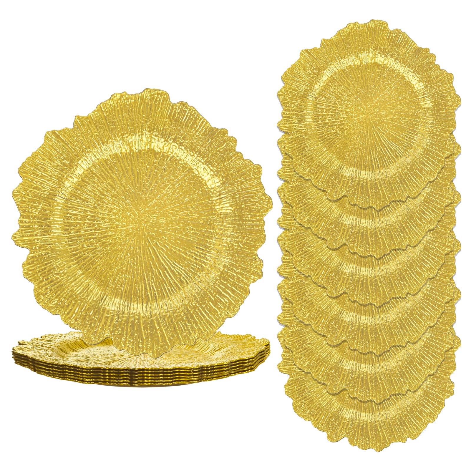 - Premium Material:These gold chargers for dinner plates made from high-quality plastic material,unbreakable materials,suitable for outdoor party weddings.