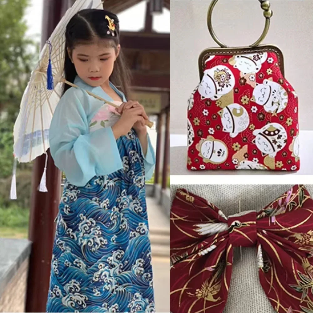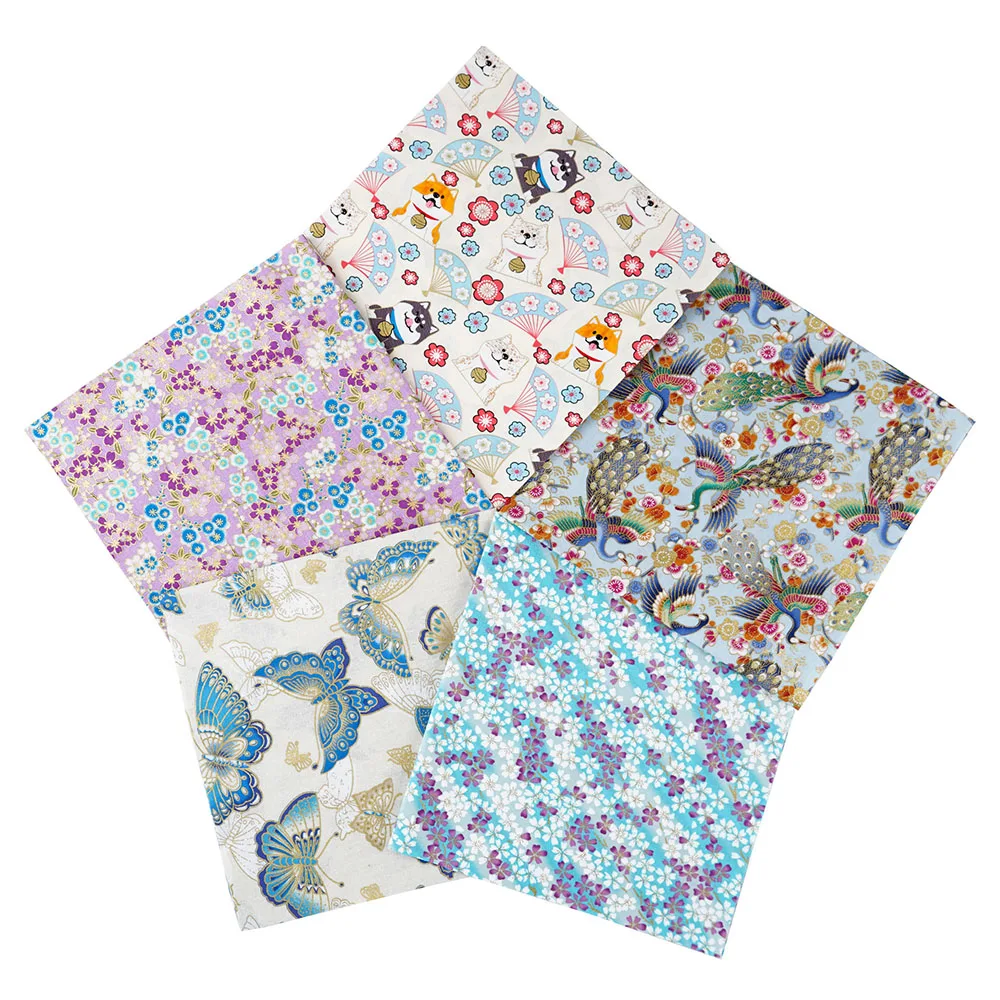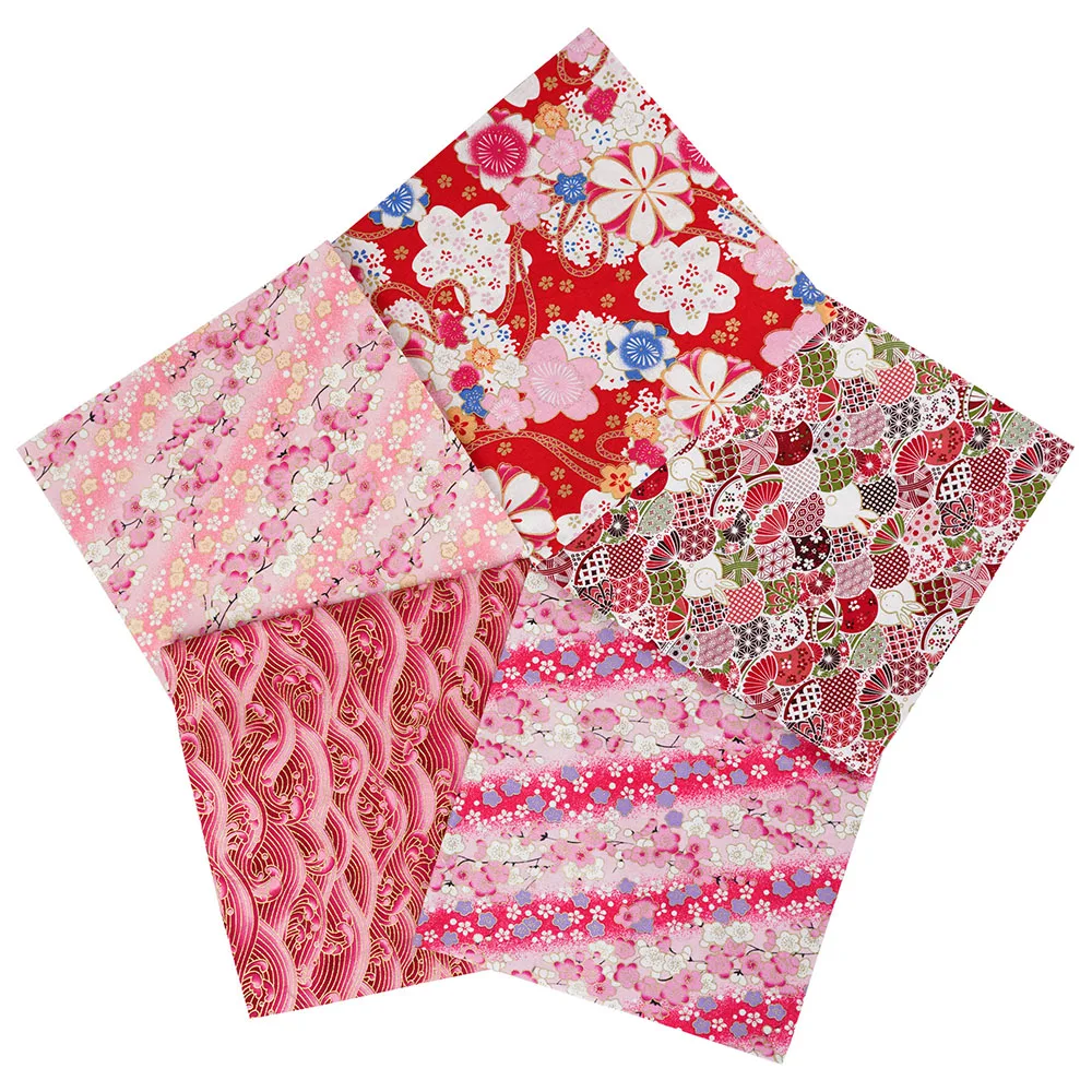 5pcs 25x25/50x50cm Gold-foiled Japanese-style Floral fabric Cloth for DIY Craft Gift Wrapping Home Decoration Sewing Accessories