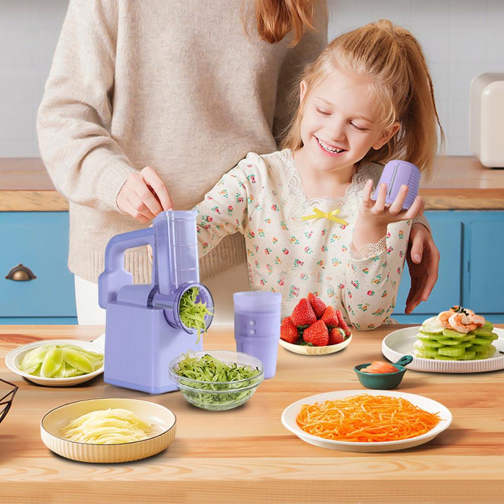 3 IN 1 MULTIFUNCTIONAL DESIGN: This innovative kitchen gadget combines the functions of a vegetable slicer, cheese chopper and ice shaver in one device, allowing you to handle a variety of ingredients with ease. Whether it's slicing vegetables, chopping cheese or shaving smoothies, it can do it all in one machine, saving you kitchen space and the cost of buying multiple devices.