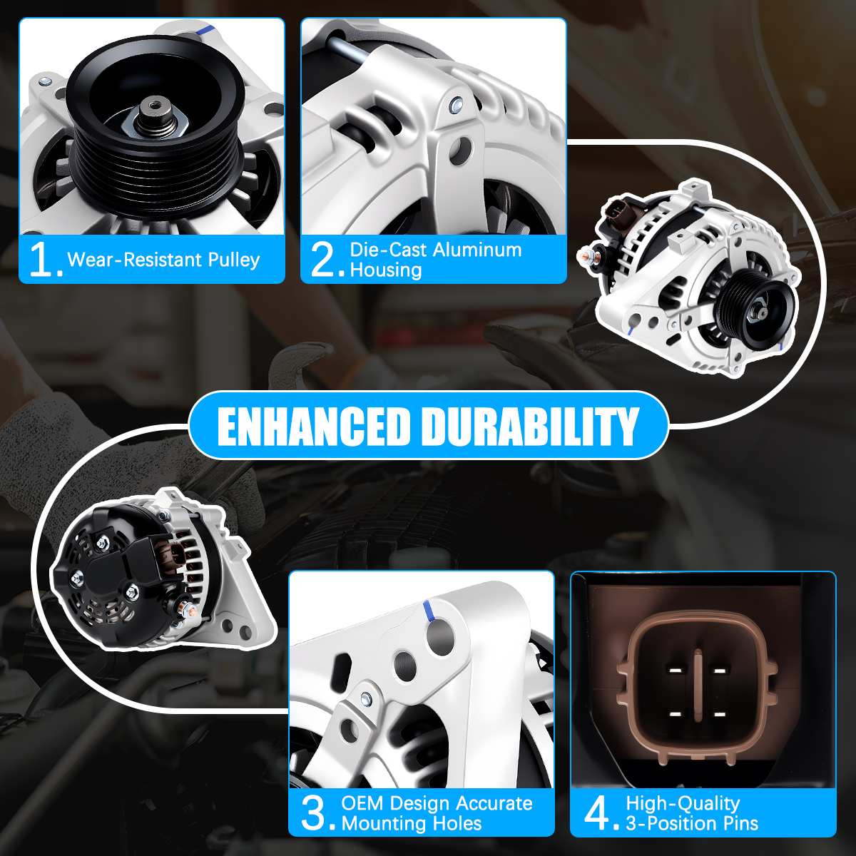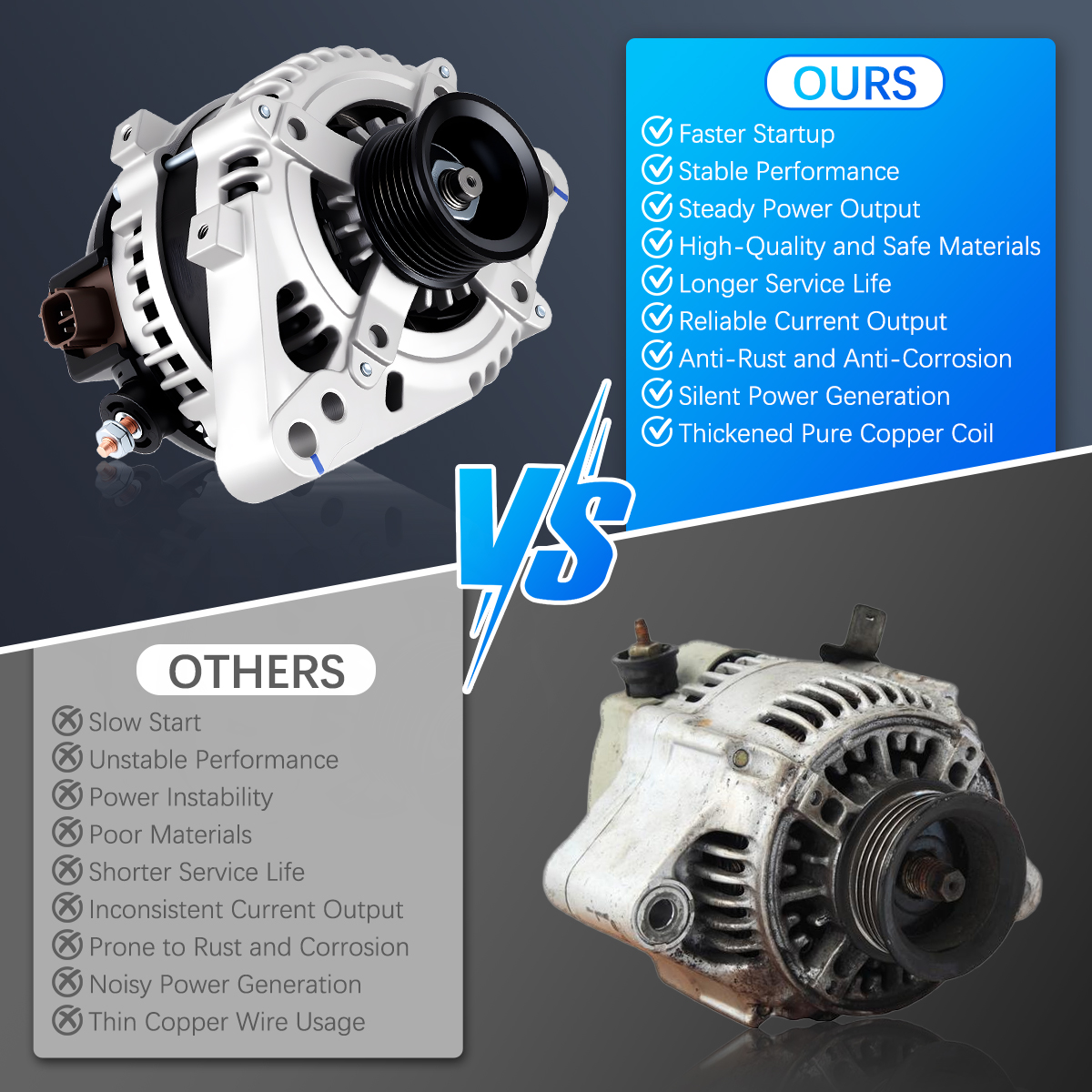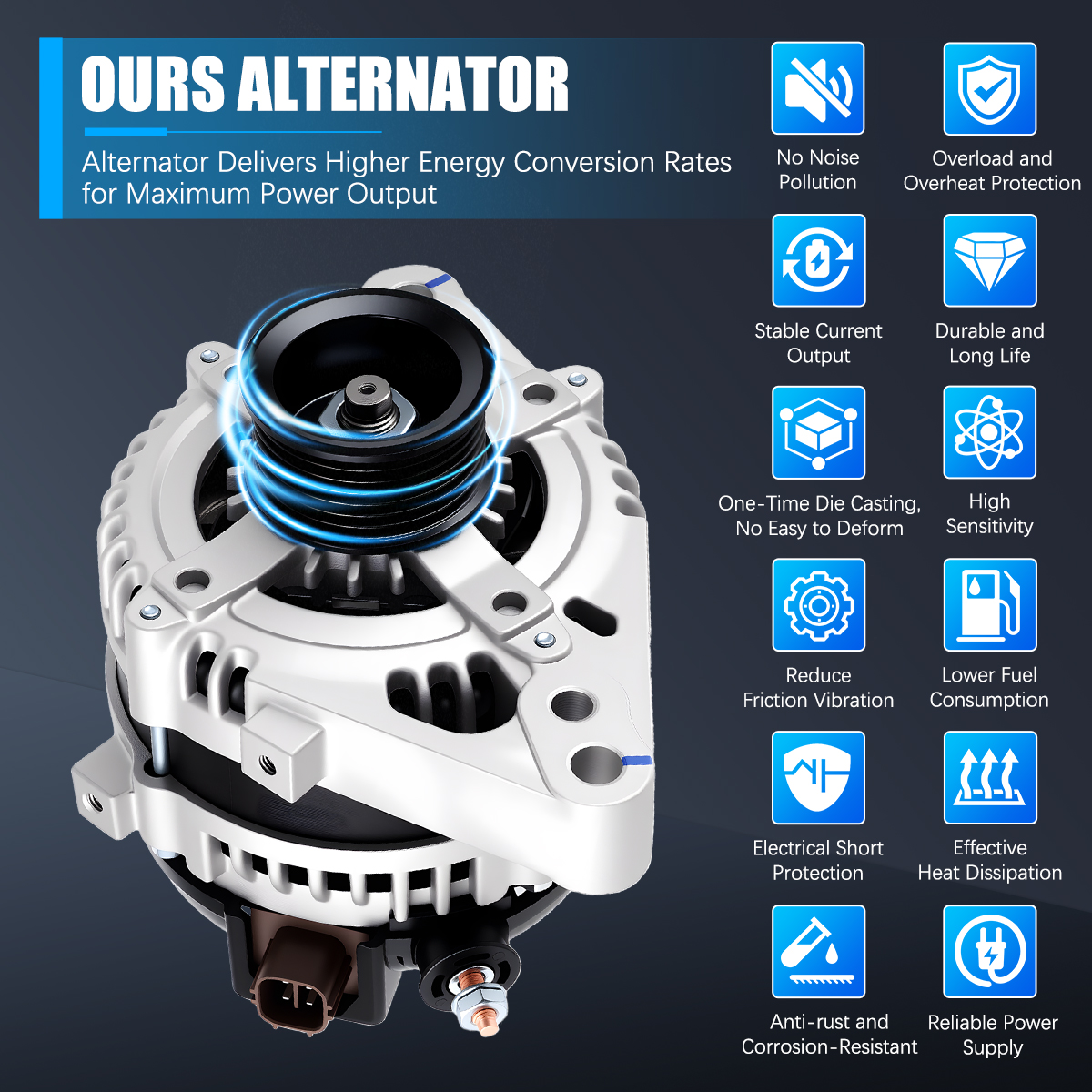 Rugged and stable car alternator, matched against OE originals for performance.
